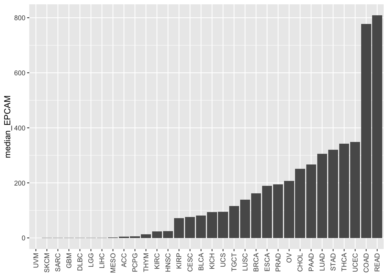 # Reorder the bars based on median EPCAM values