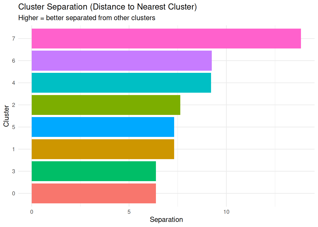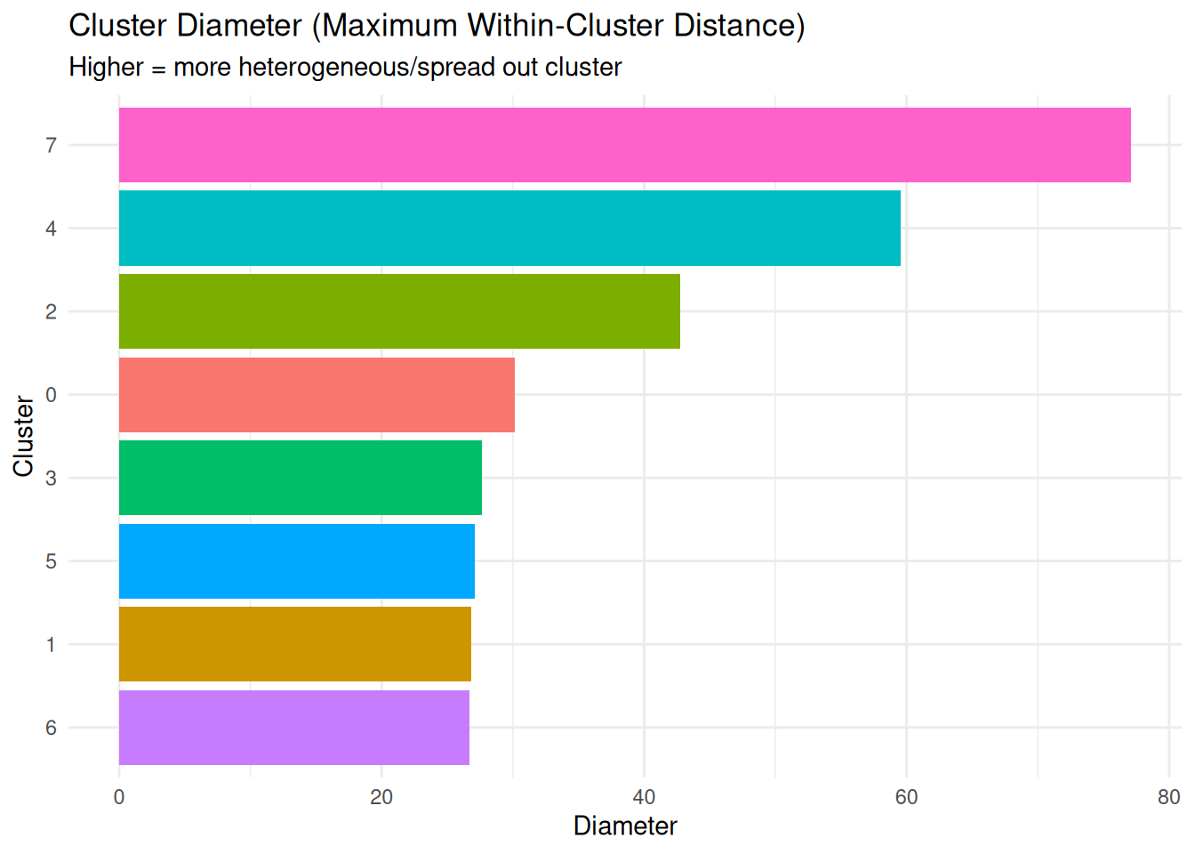 cat("\nMost Heterogeneous Clusters (consider sub-clustering):\n")