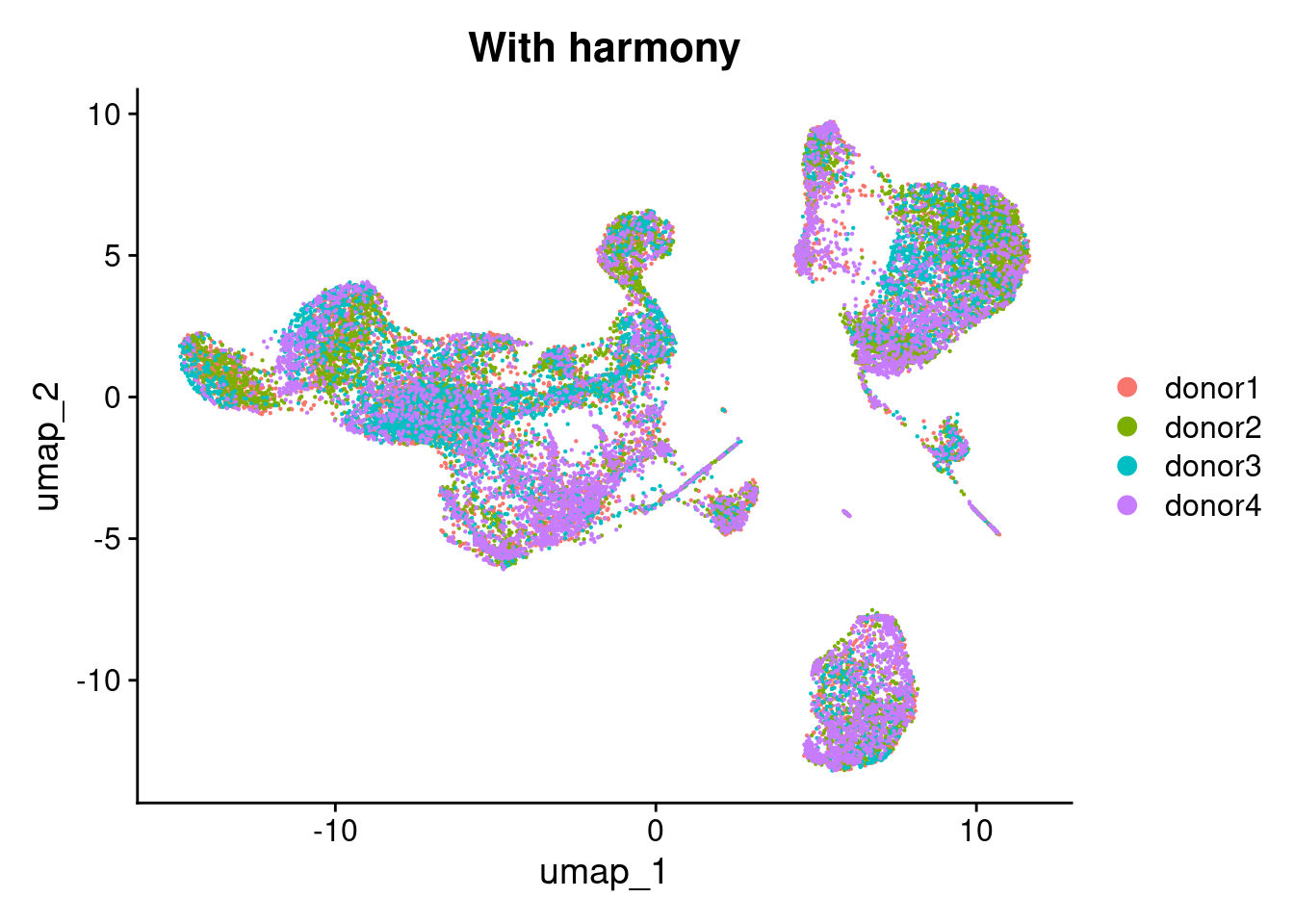 pbmc20k_harmony <- RunUMAP(pbmc20k_harmony, reduction = "harmony",  dims = 1:20, verbose = FALSE)