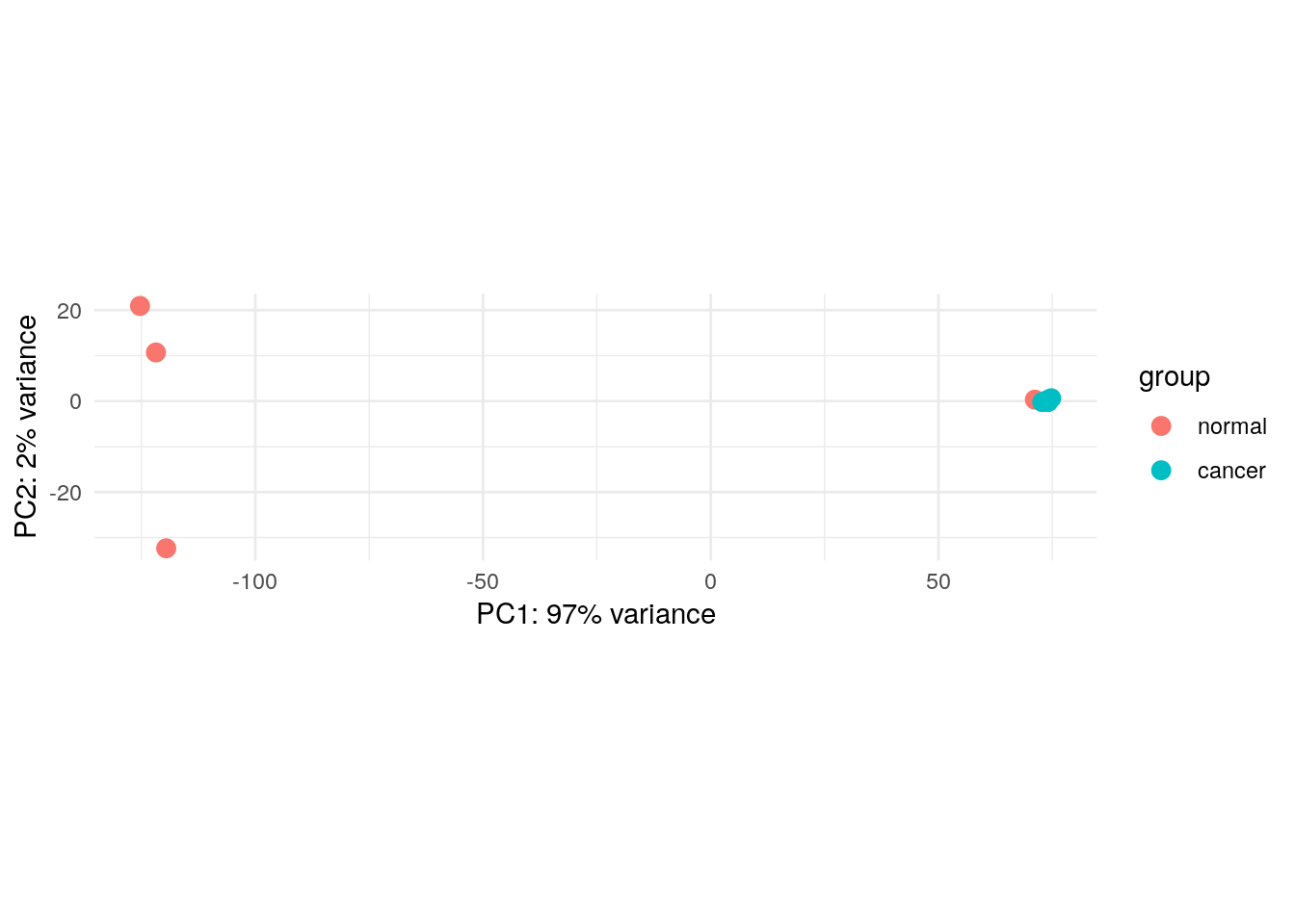 plotPCA(rlogTransformation(lung_cancer), intgroup="group") +