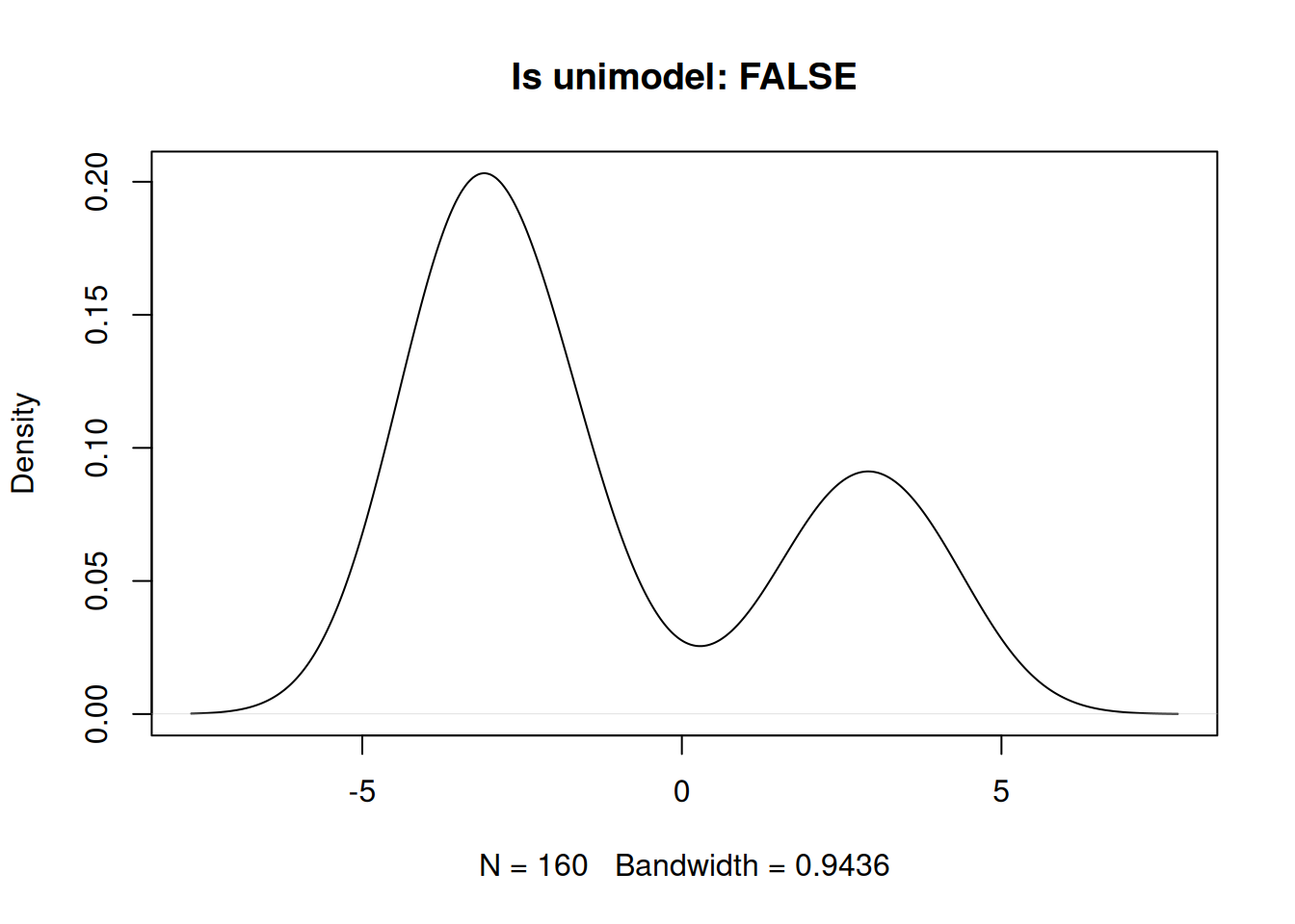 plot(density(x1), main = paste0("Is zero-inflated: ", check_zero_spike(x1)$zero_inflated))
