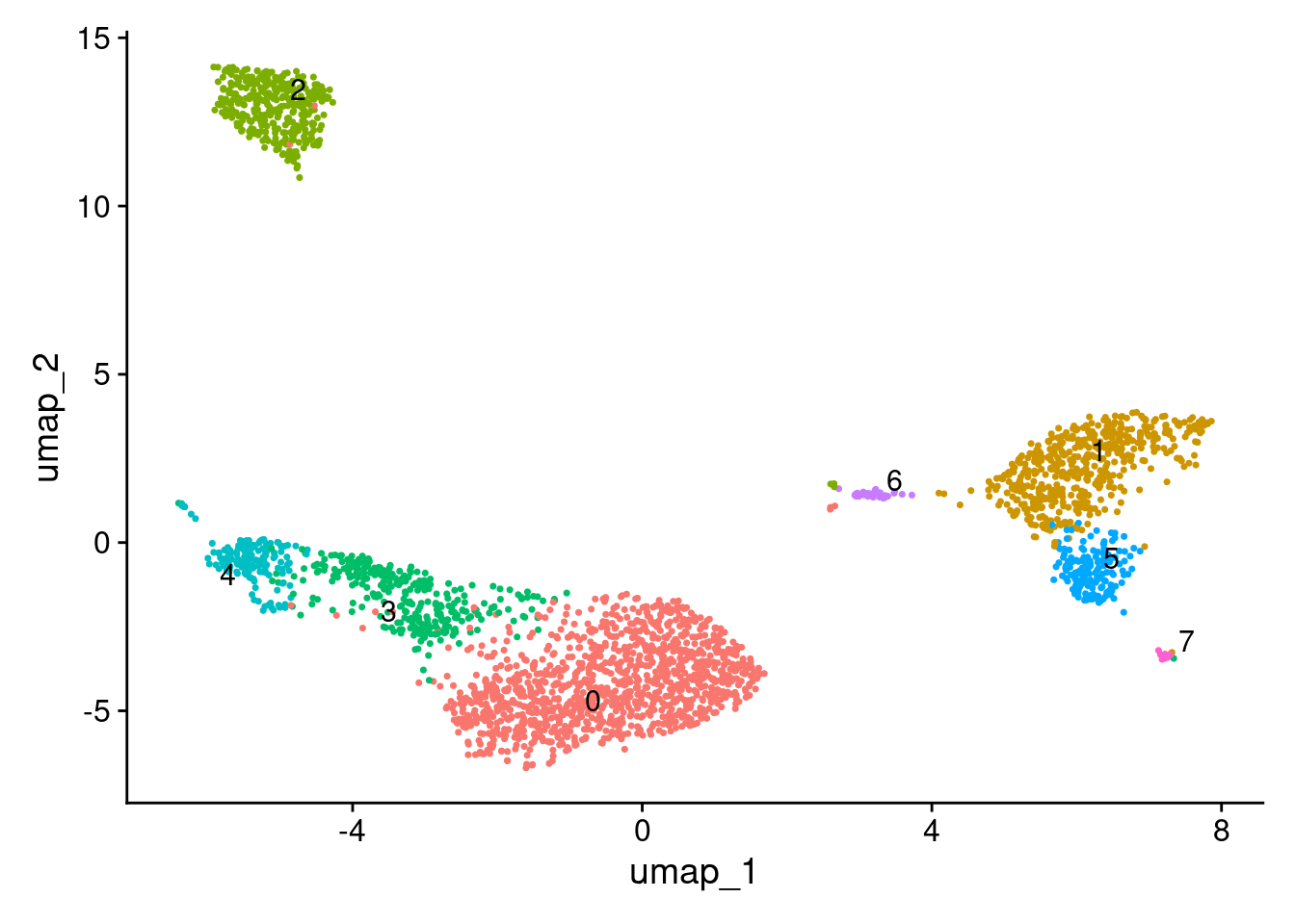 dplyr::filter(seurat_clusters != "4", seurat_clusters != "3") |>