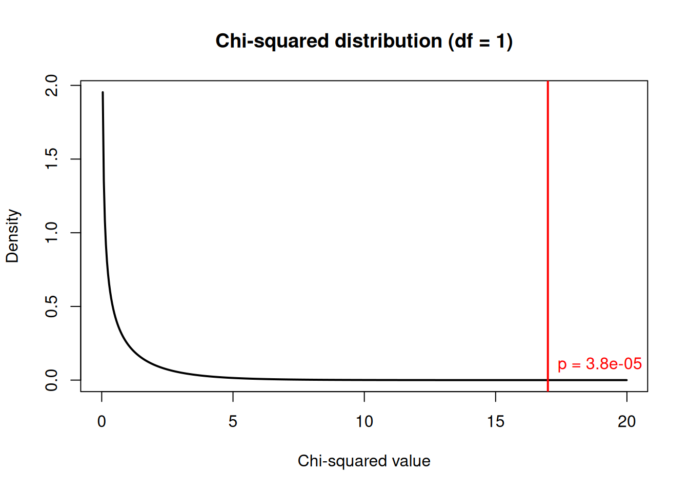 plot(x, dchisq(x, df = 1), type = "l", lwd = 2, col = 1,