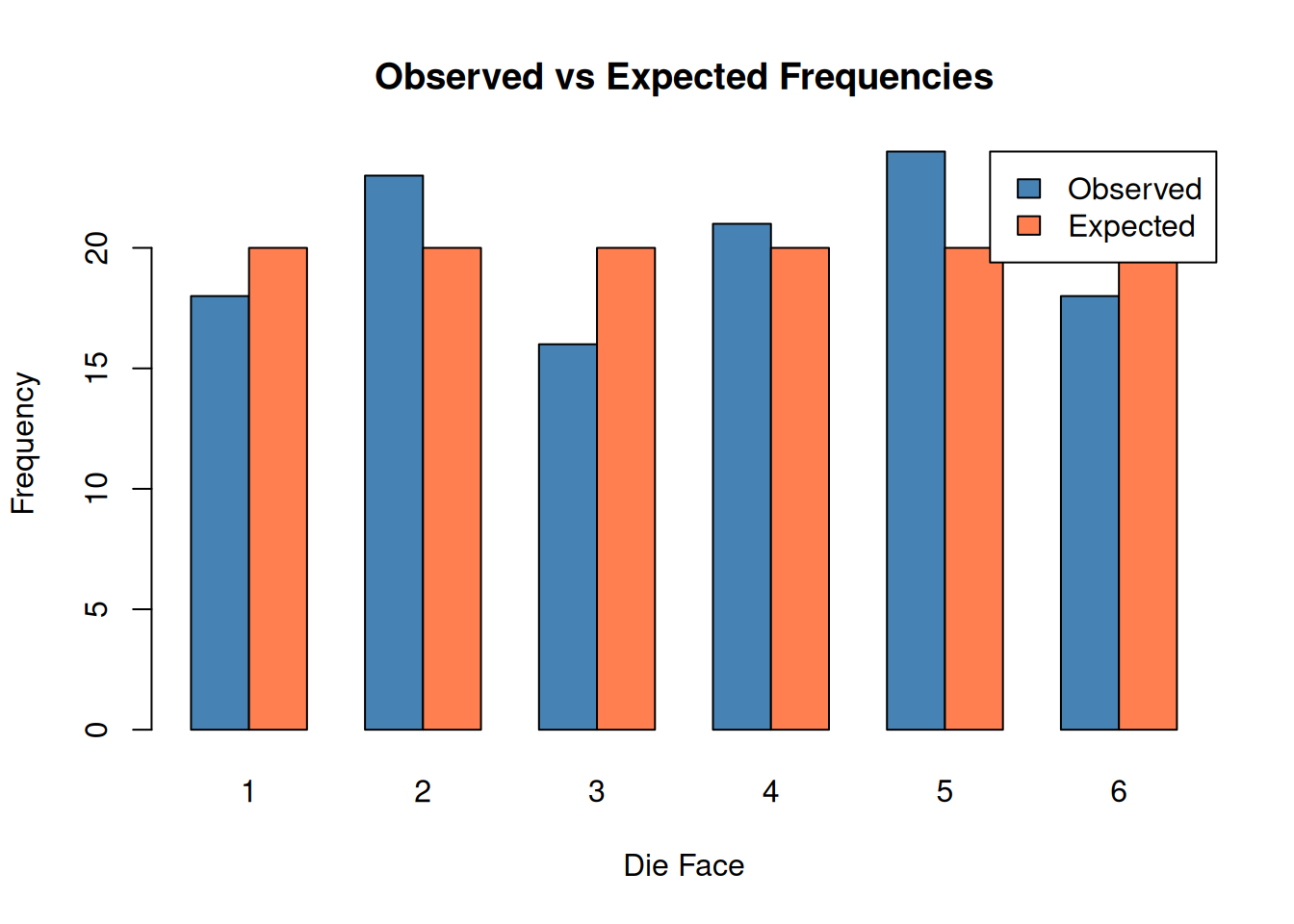 Goodness of fit Compare observed to expected frequencies chisq.test(x, p = prob)