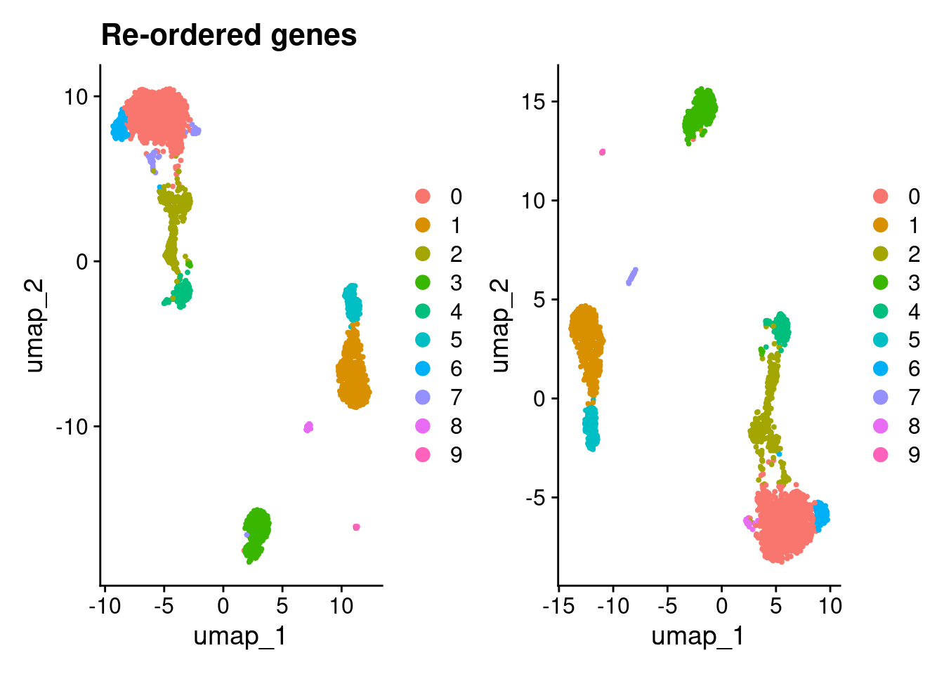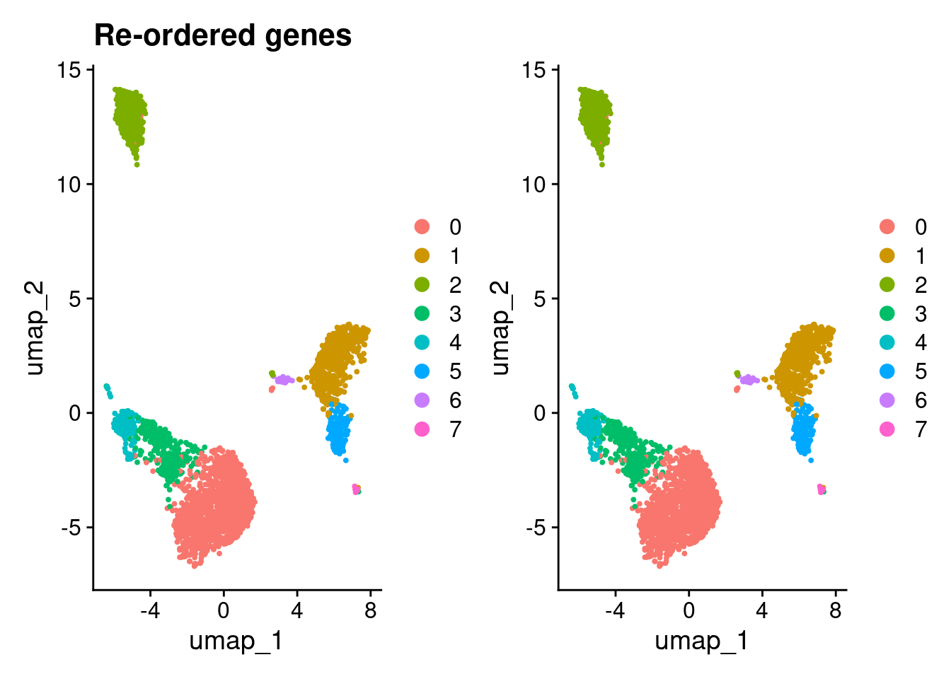 However it is concerning that re-ordering genes produced different results when using Seurat version 5.