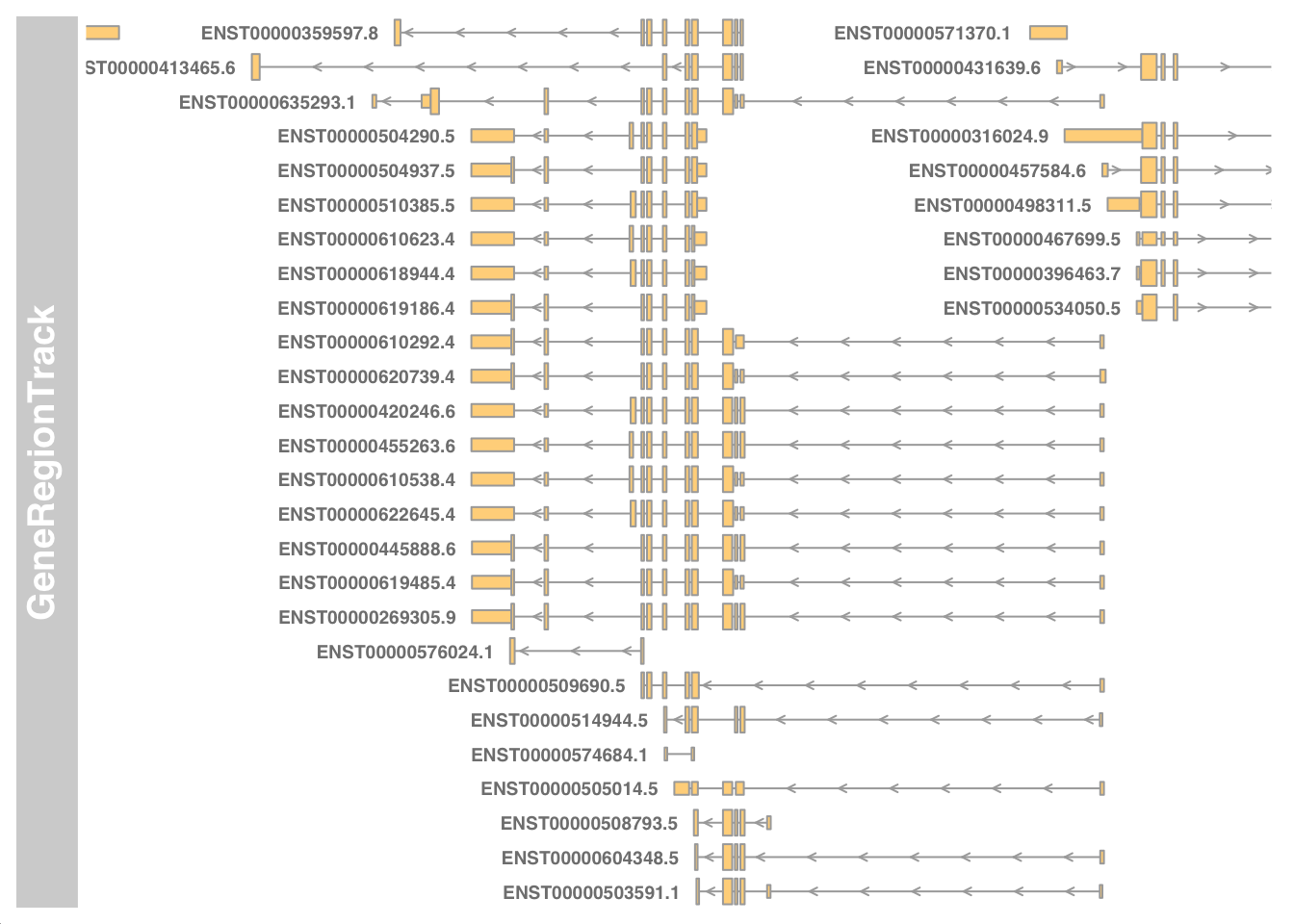 geneTrack <- GeneRegionTrack(my_txdb, chromosome="chr17", from=my_start, to=my_end)