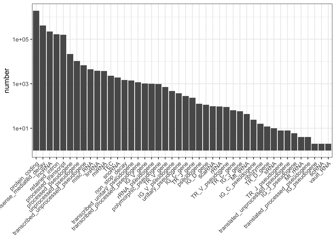 ggplot(my_biotypes, aes(transcript_type, number)) +