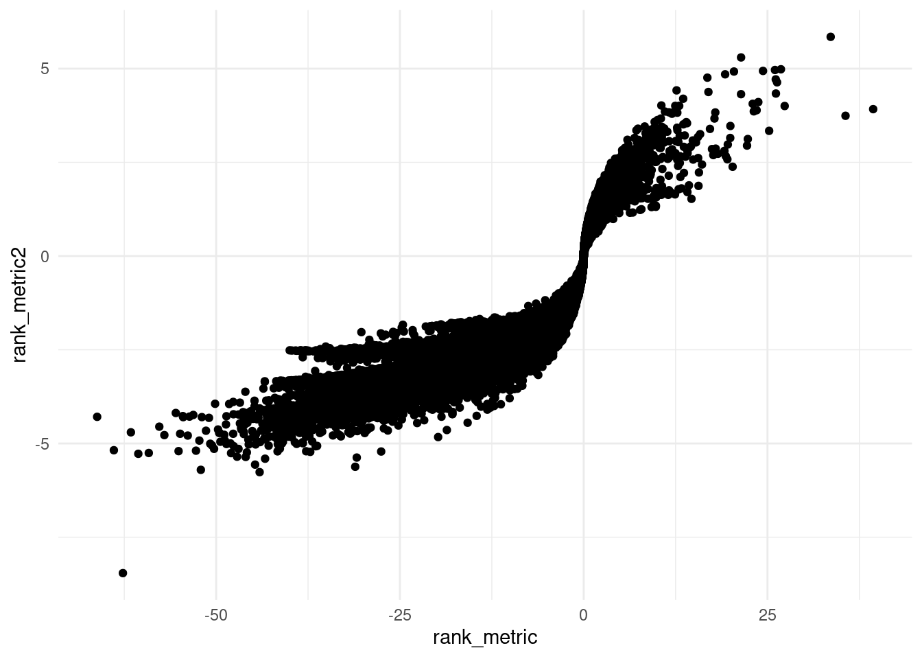 ggplot(edger_res, aes(rank_metric, rank_metric2)) +