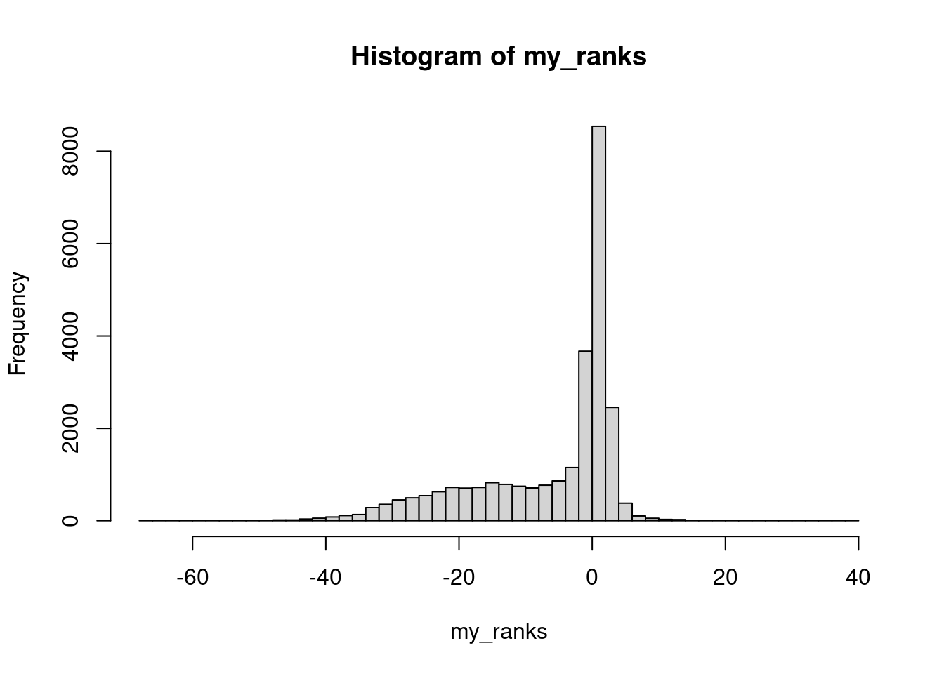 dplyr::mutate(rank_metric = logFC * -log10(PValue)) |>
