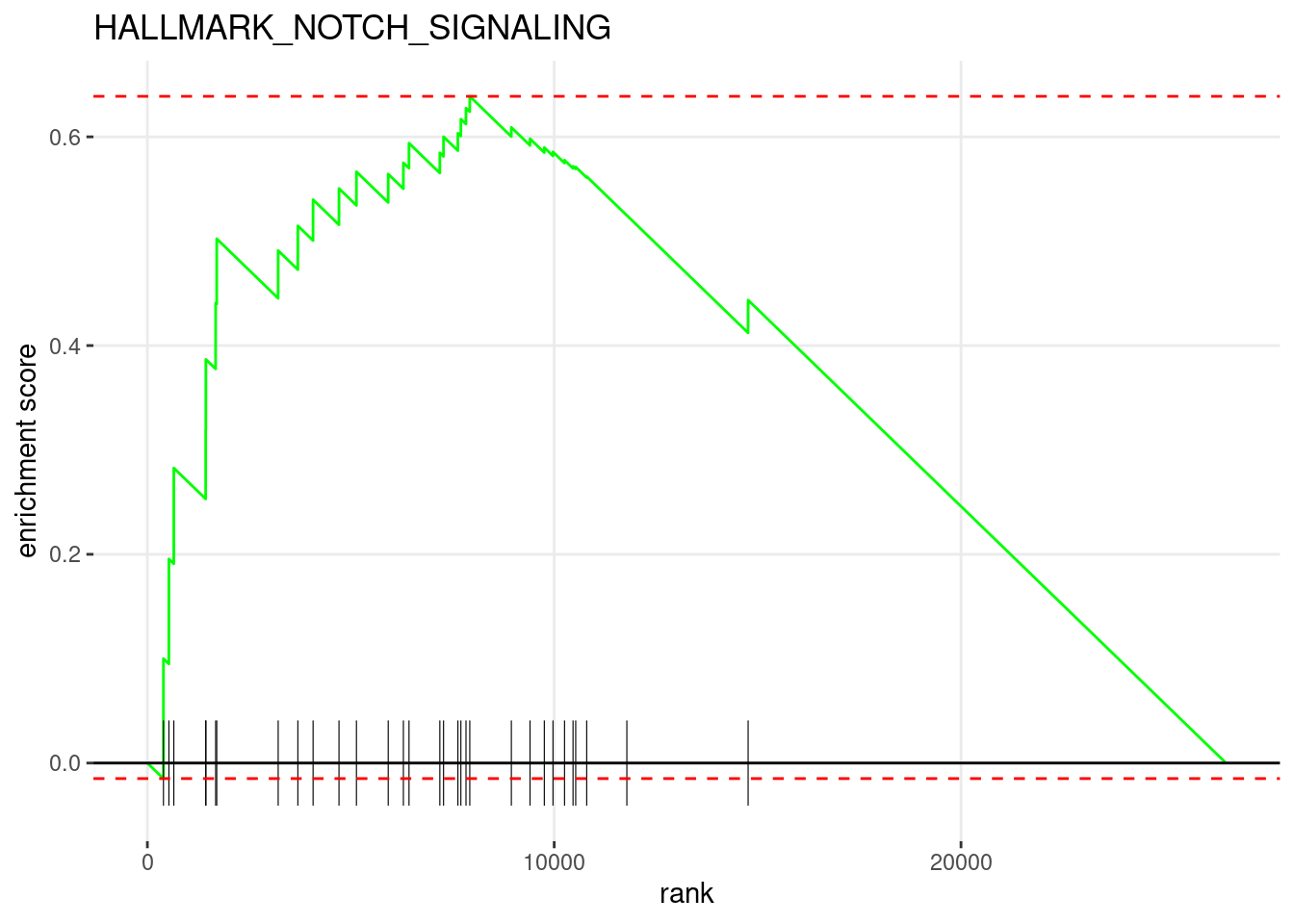 ggplot2::labs(title=head(fgseaRes[order(pval), ], 1)$pathway)