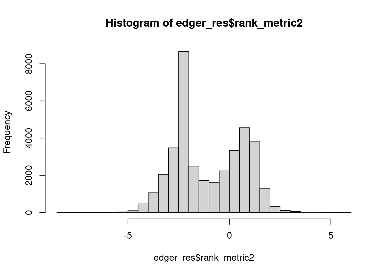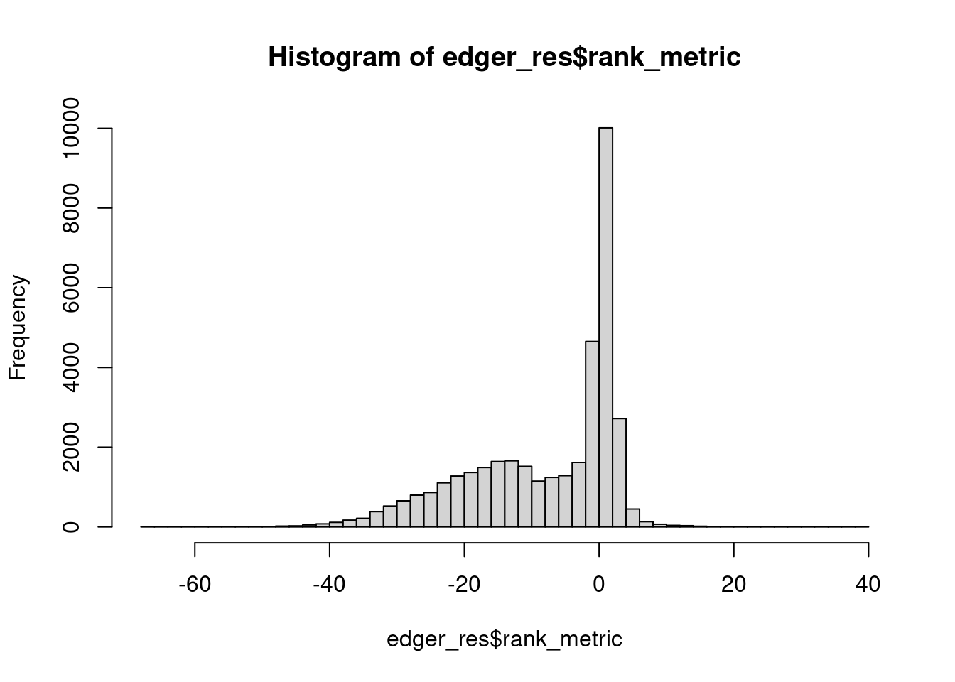 dplyr::mutate(rank_metric2 = sign(logFC) * -log10(PValue)) -> edger_res