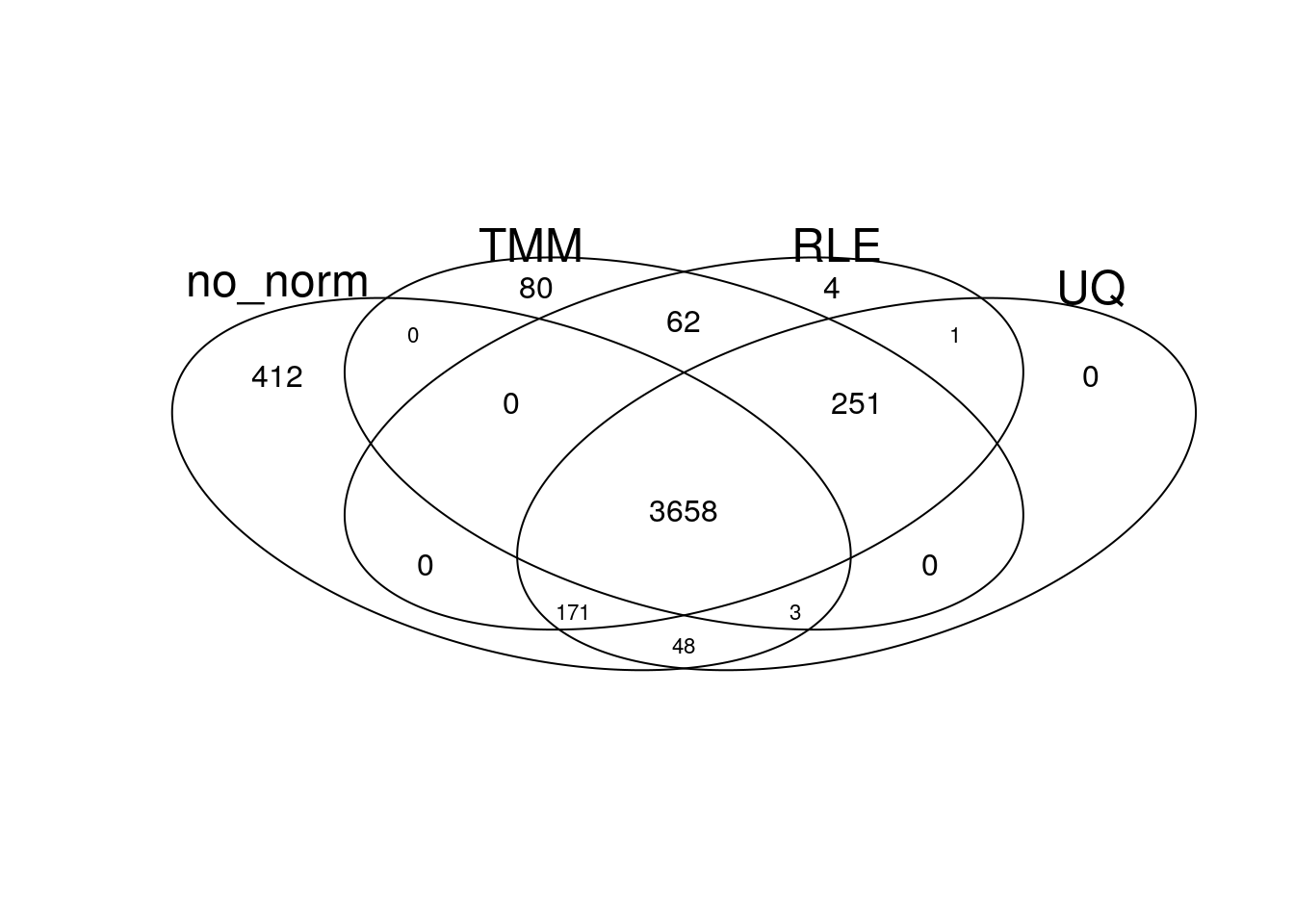 gplots::venn(list(no_norm = my_de_no_norm, TMM = my_de_tmm, RLE = my_de_rle, UQ = my_de_uq))