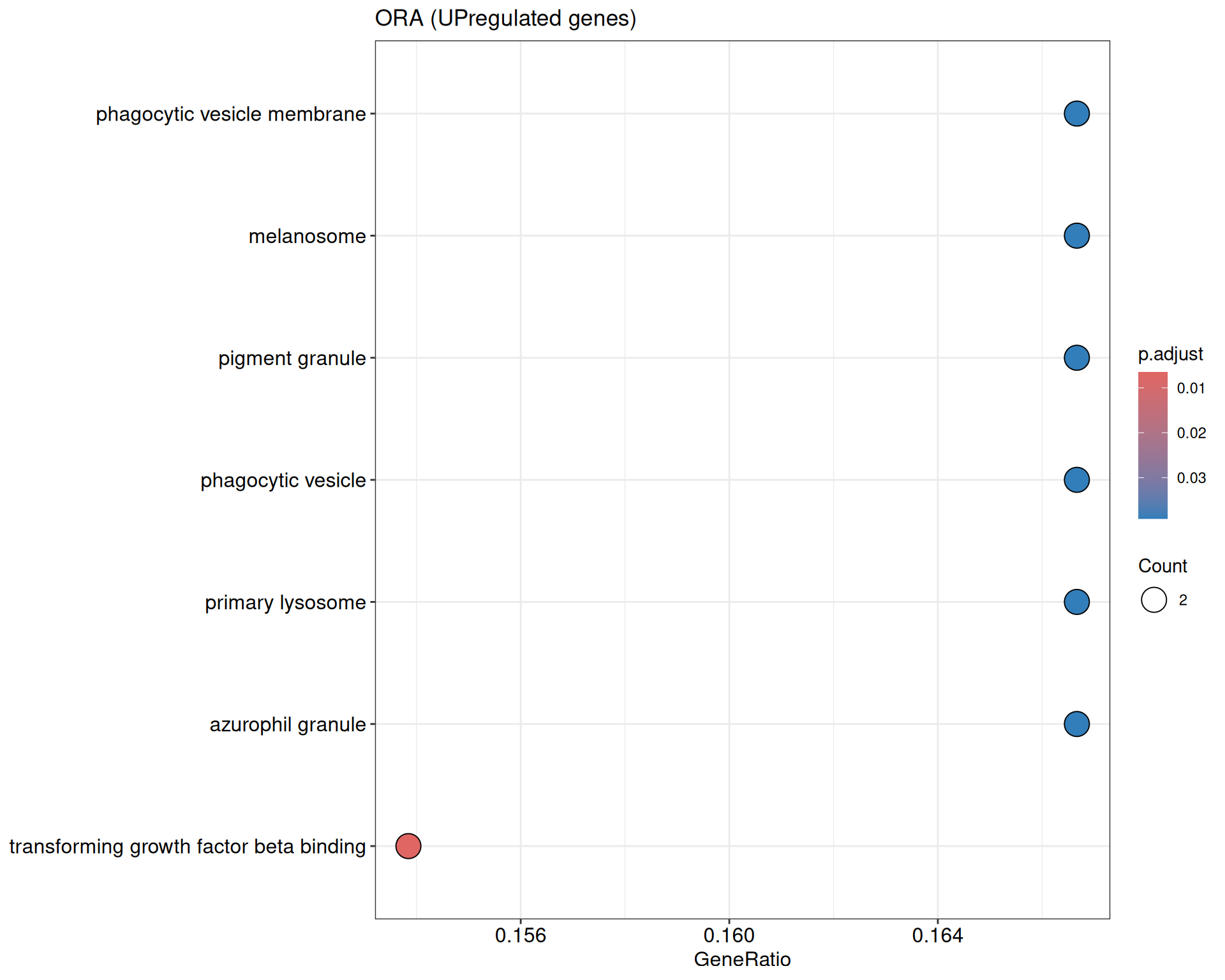 We performed a functional enrichment analysis based on Over-Representation Analysis (ORA) using the GO pathway database. Unlike GSEA, which considers the entire ranked list of genes, ORA focuses only on genes that meet specific differential expression thresholds (adjusted p-value and log2 fold change). The analysis was conducted separately for upregulated and downregulated genes to identify GO pathways that are significantly enriched in each group, compared to what would be expected by chance. This allows for a clearer biological interpretation of distinct transcriptional programs activated or suppressed in the dataset. The dot plots below display all significantly enriched GO pathways. Each dot’s size represents the number of differentially expressed genes associated with the pathway, while the color reflects the statistical significance of the enrichment (adjusted p-value).