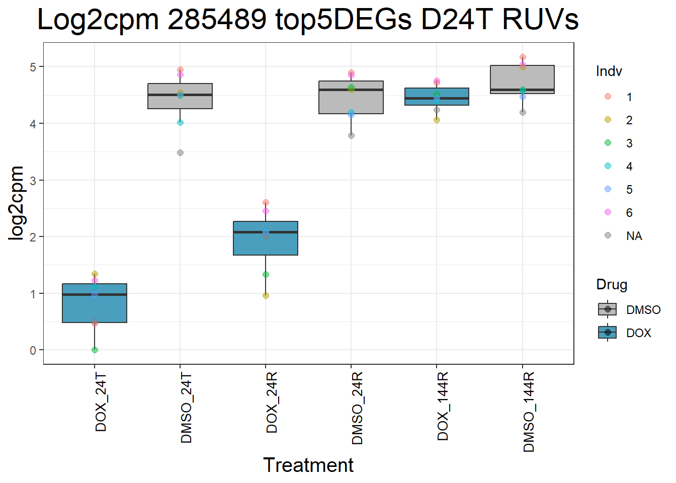 ggtitle(paste("Log2cpm", gene, "top5DEGs D24R RUVs")) +