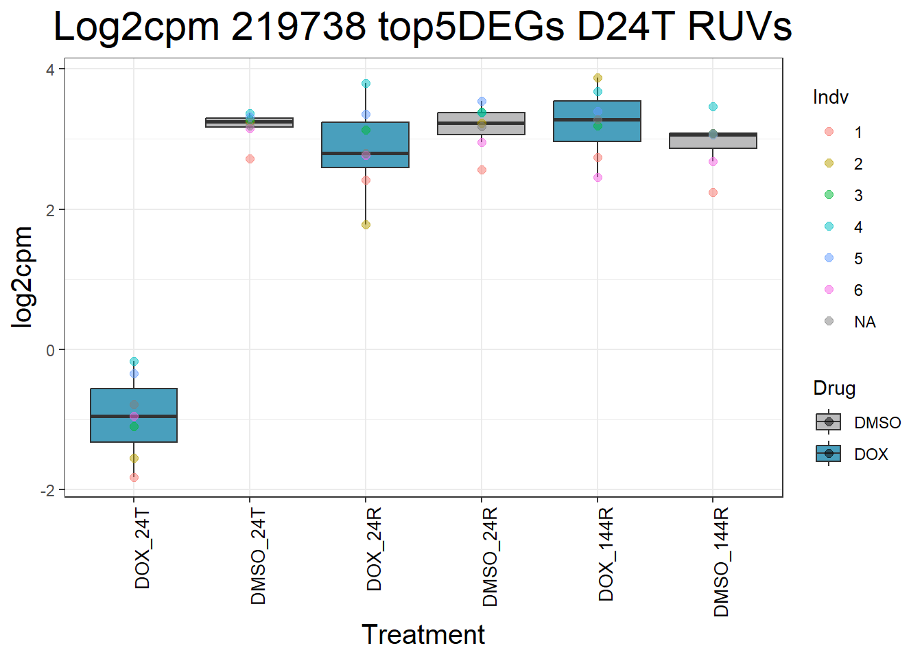ggtitle(paste("Log2cpm", gene, "top5DEGs D24R RUVs")) +
