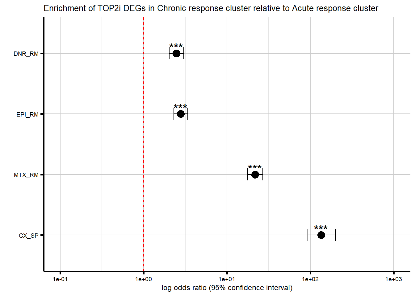 title = "Enrichment of TOP2i DEGs in Chronic response cluster relative to Acute response cluster",