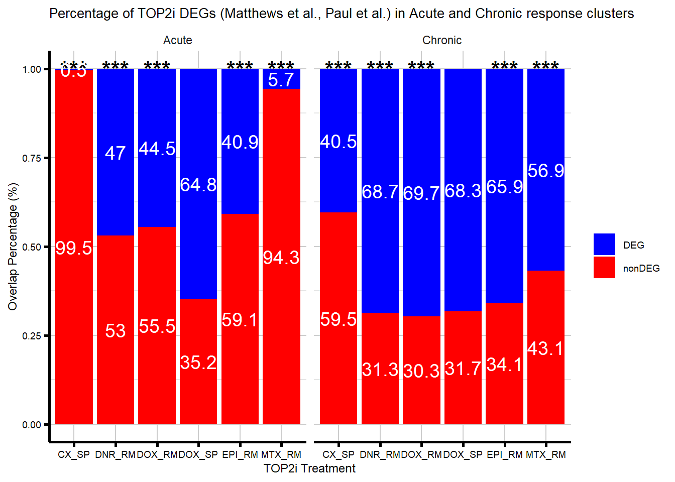 title = "Percentage of TOP2i DEGs (Matthews et al., Paul et al.) in Acute and Chronic response clusters",