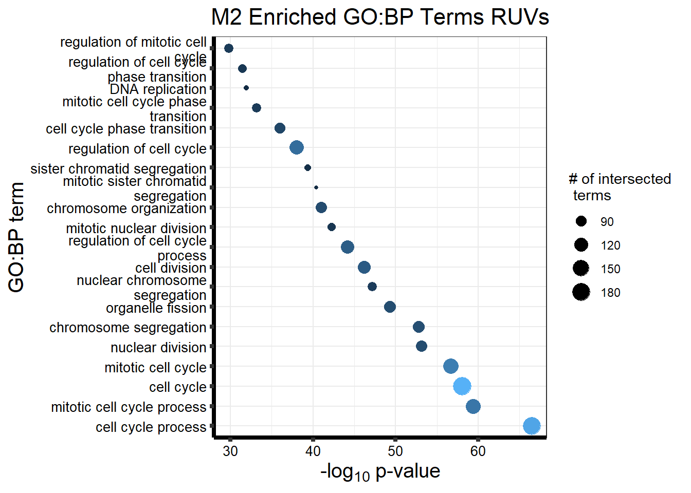 ggtitle("M2 Enriched GO:BP Terms RUVs")+