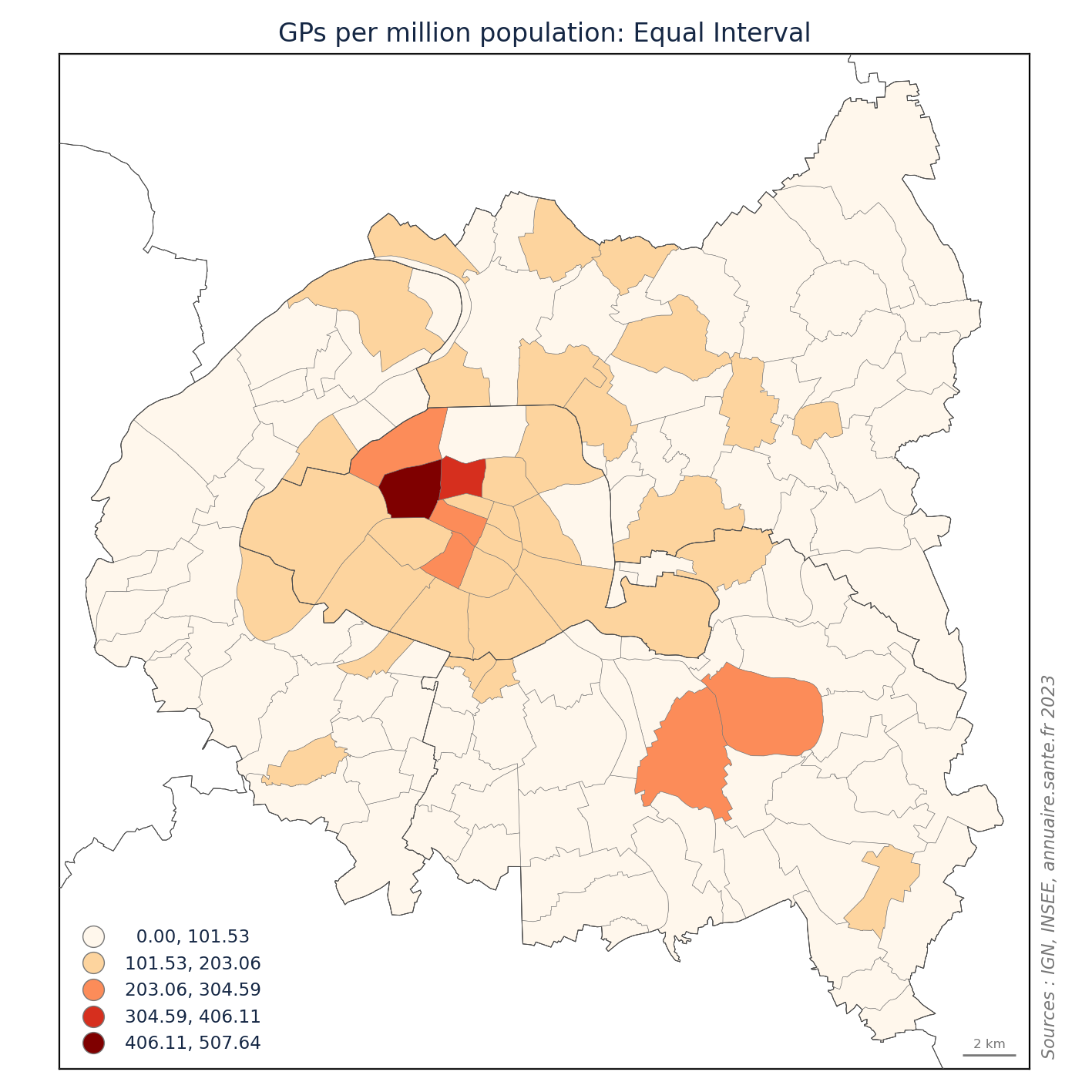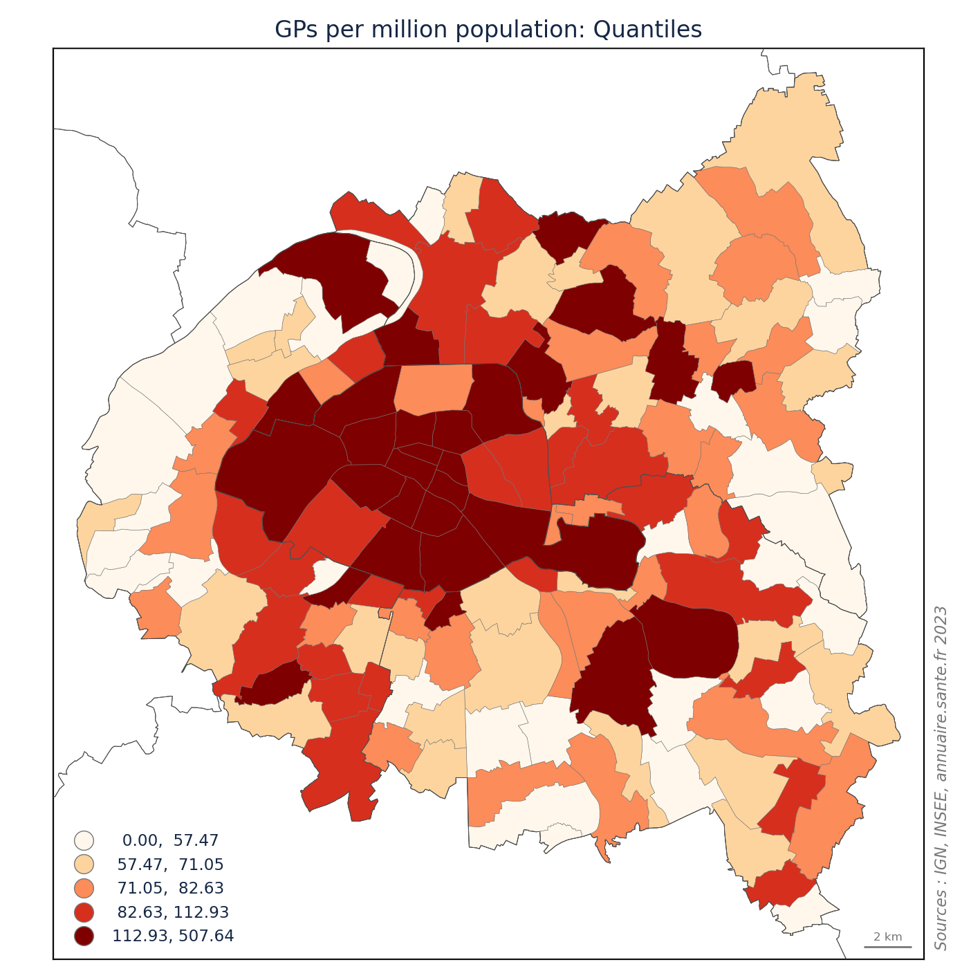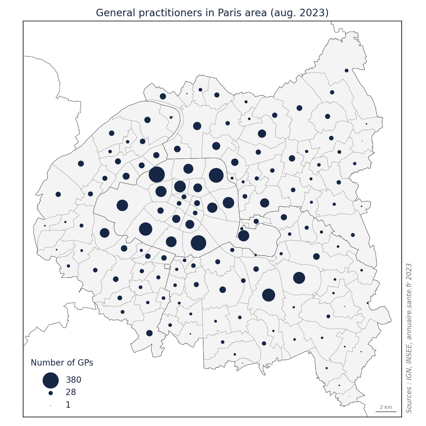 Our primary focus will revolve around examining the spatial distribution of self-employed general practitioners (GPs), distinct from those employed by healthcare institutions, within the Paris metropolitan area and its surrounding regions.