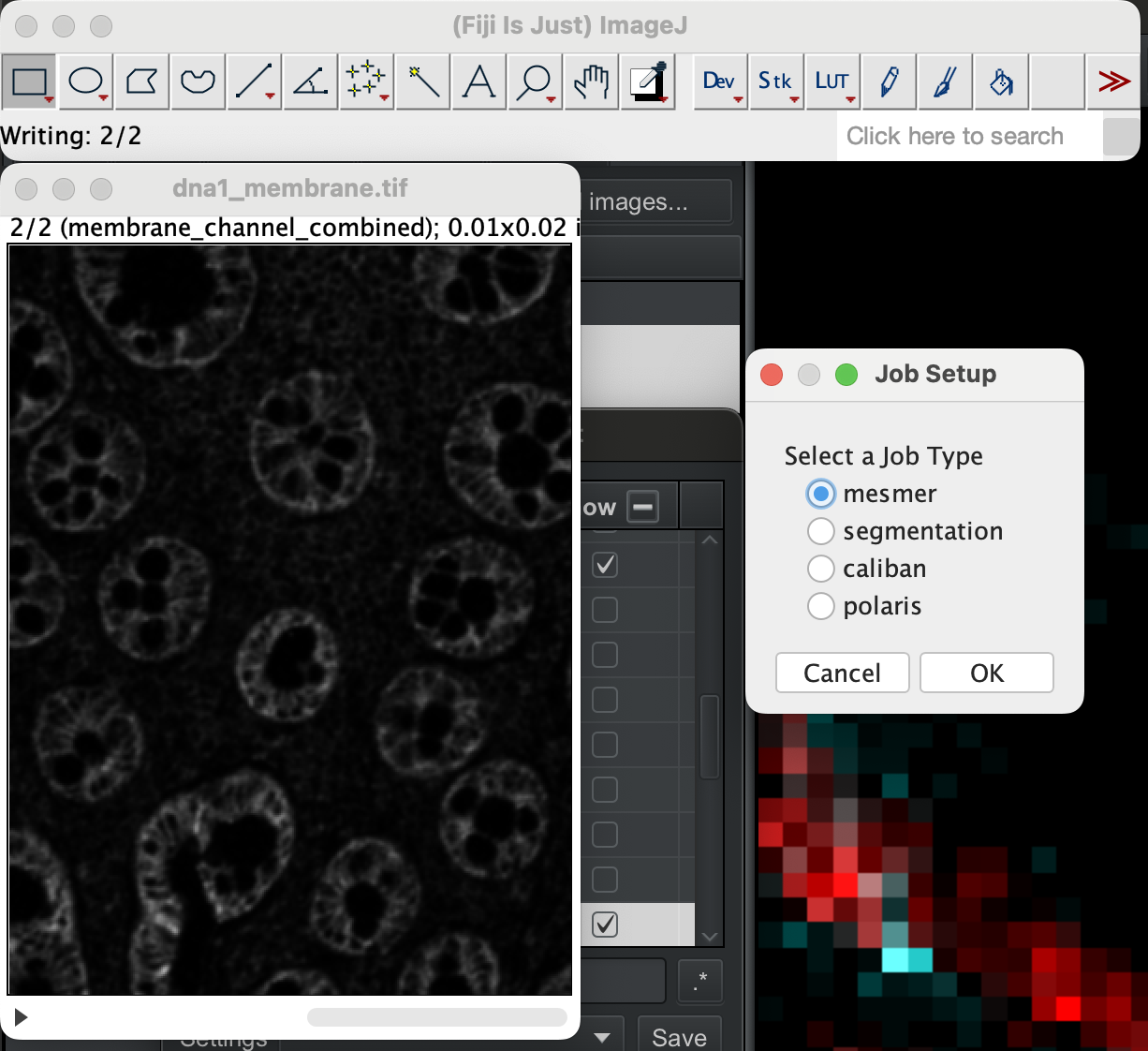 Before sending the tif file to mesmer for segmentation, we need to first create a stack tif file containing the DNA1 tif file and the merged membrane channel tif file we created in the previous section.