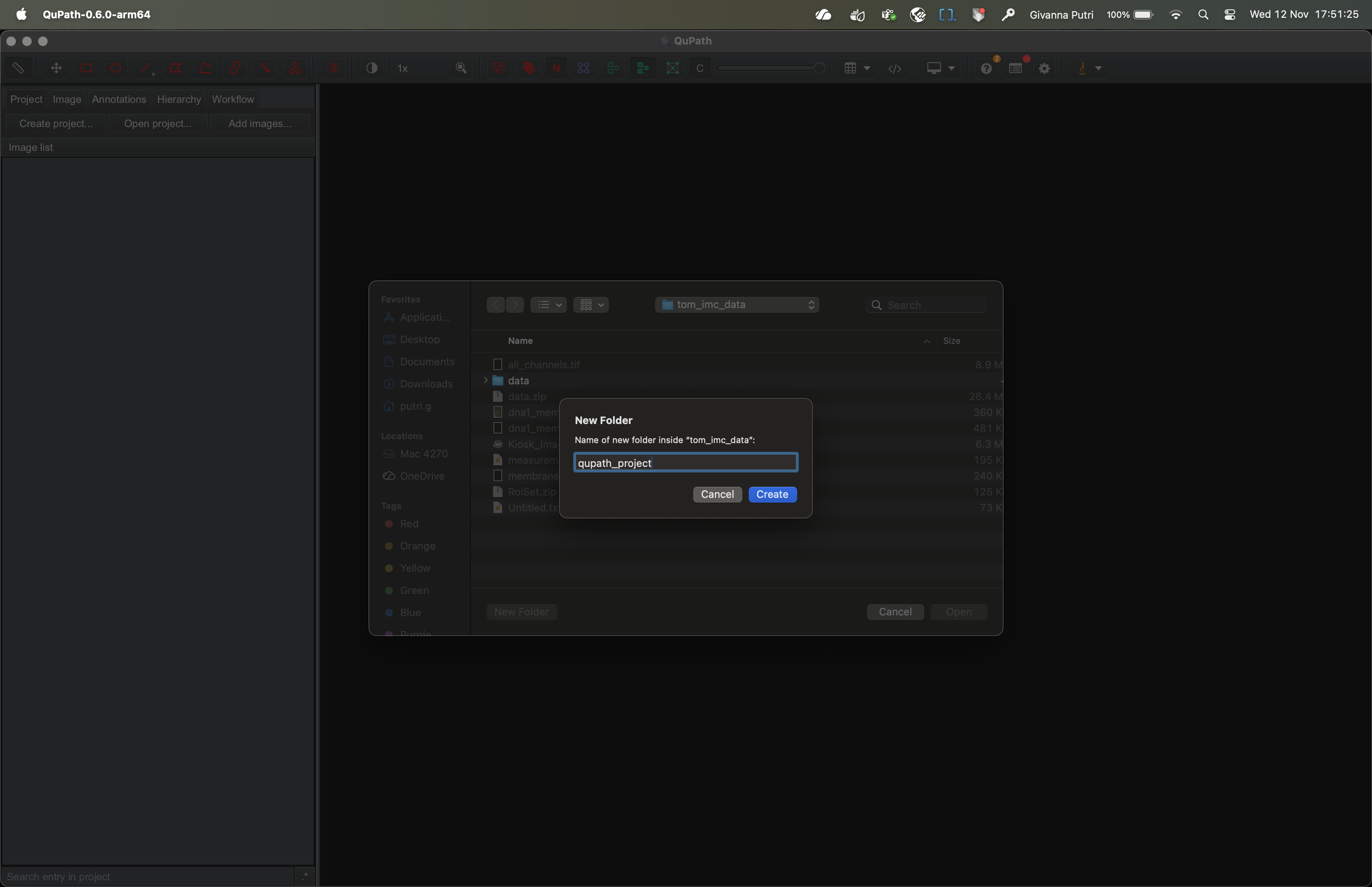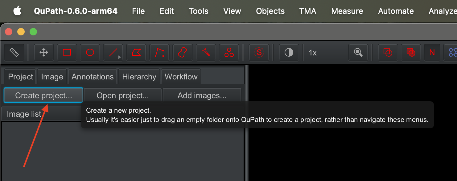 Create a qupath project by clicking on the create project... button on the right.