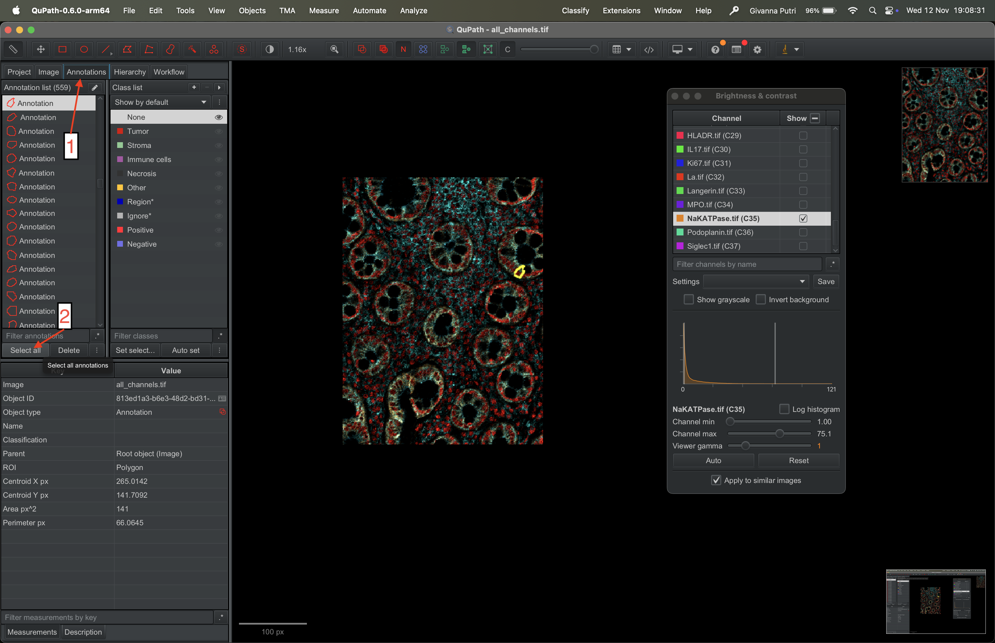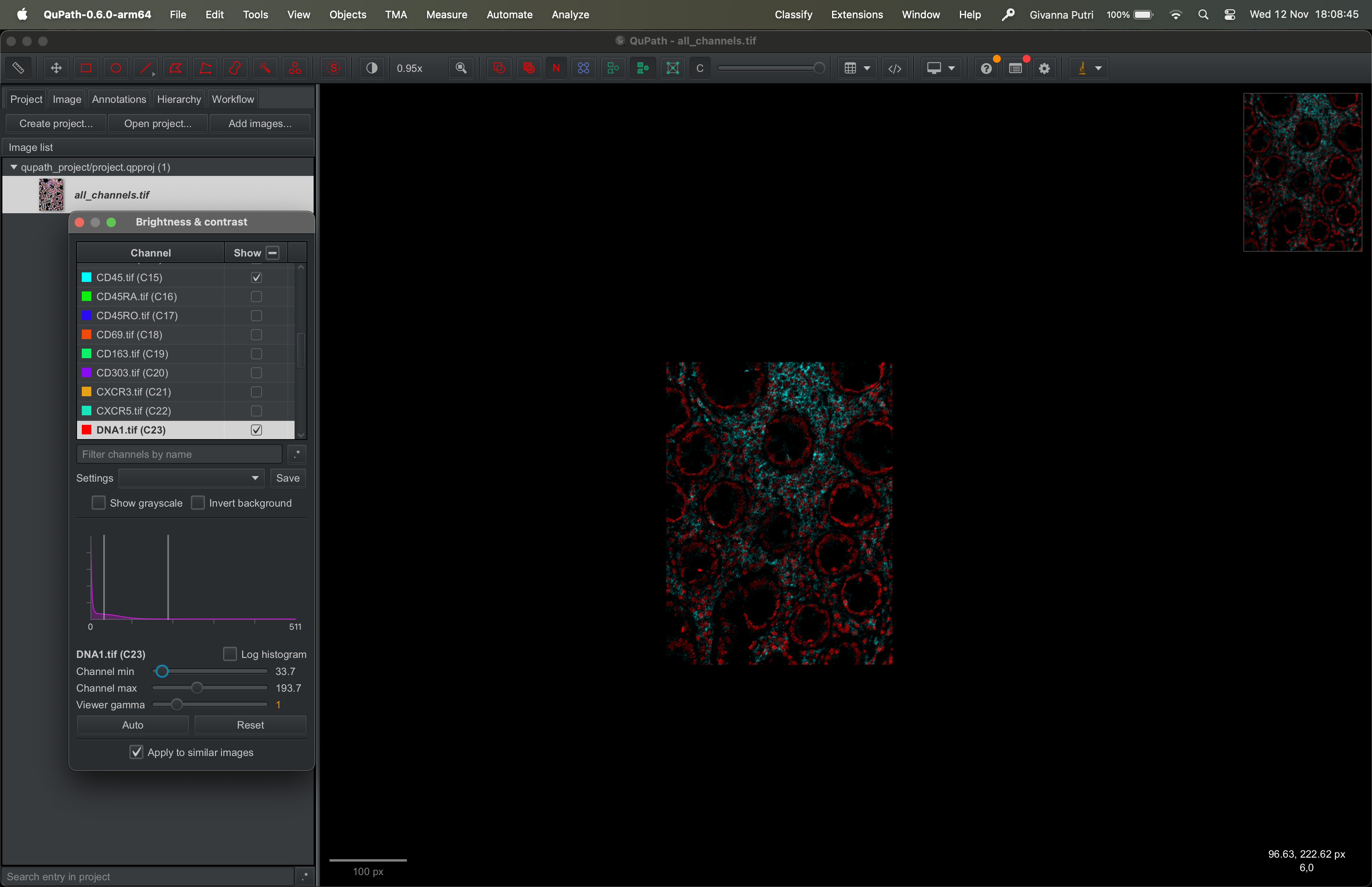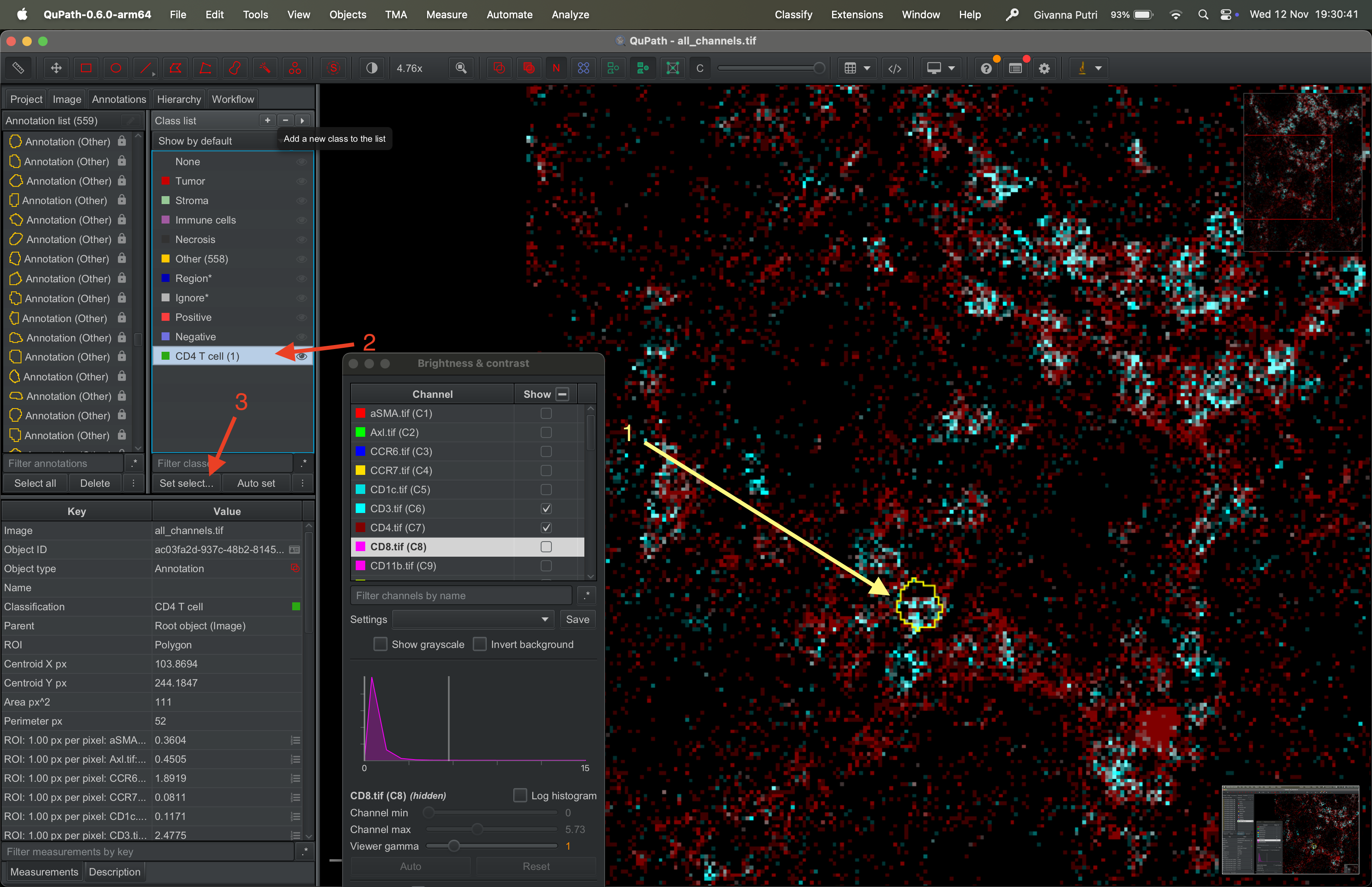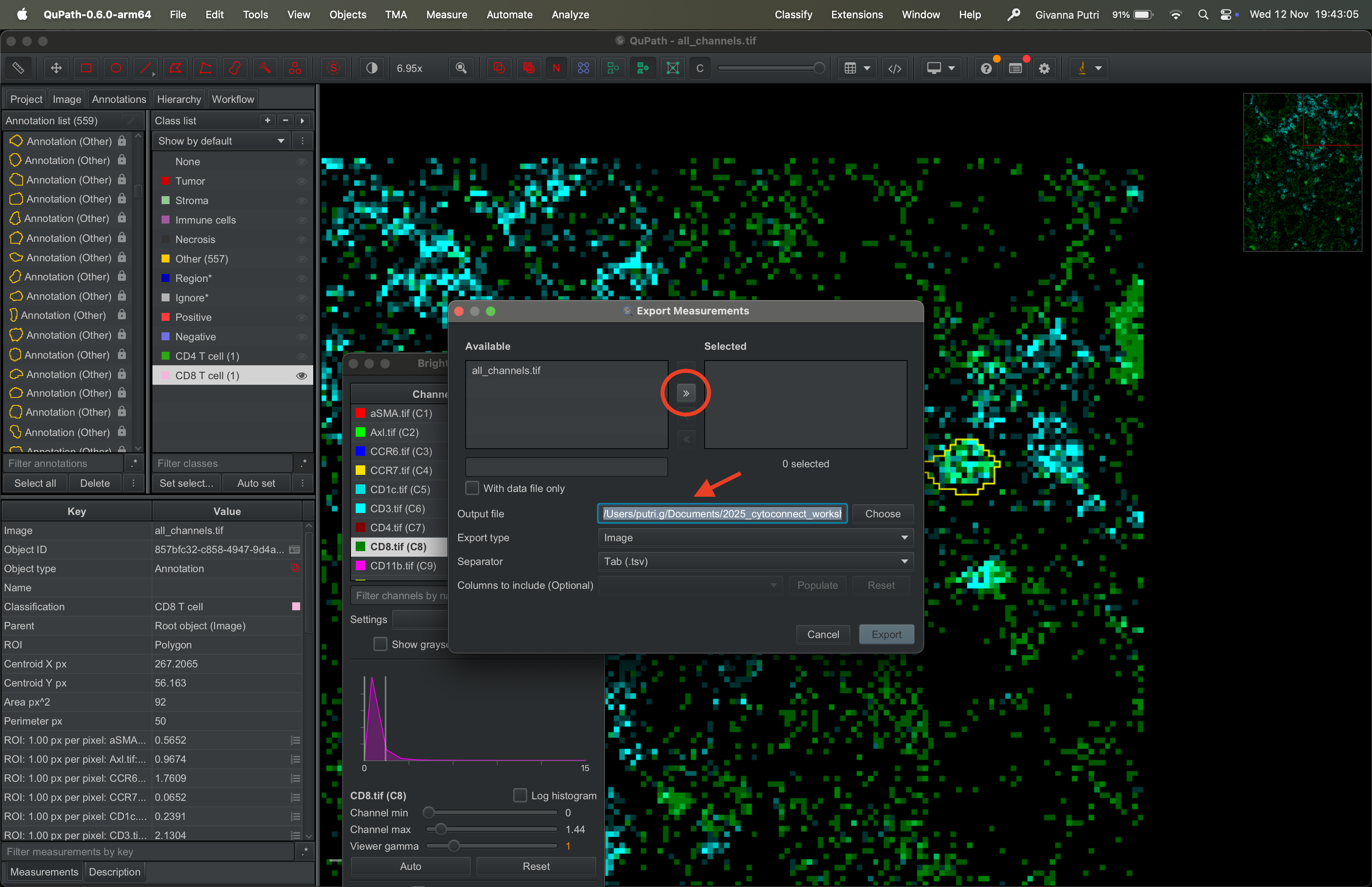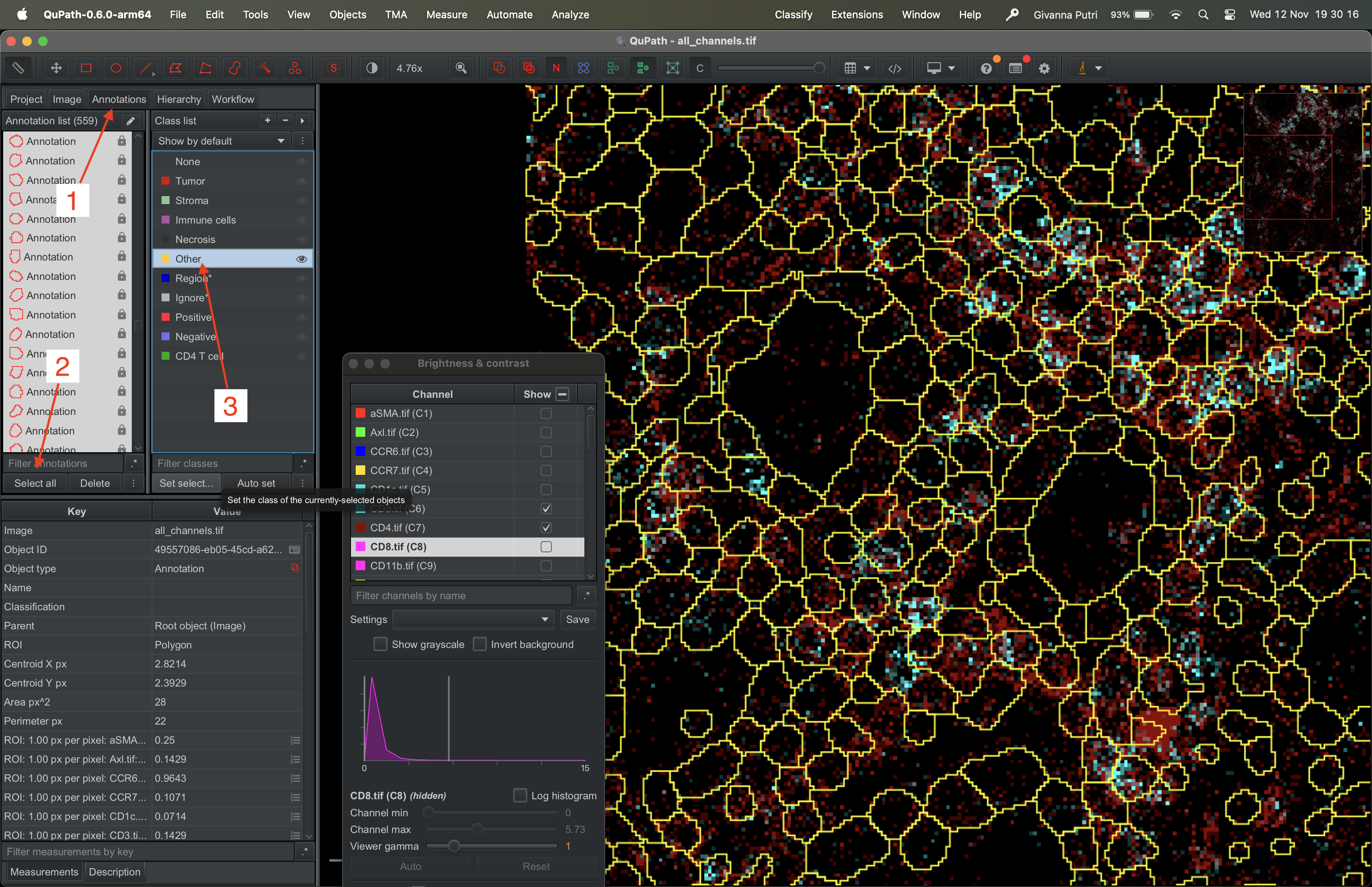 Interacting with the tif file using QuPath