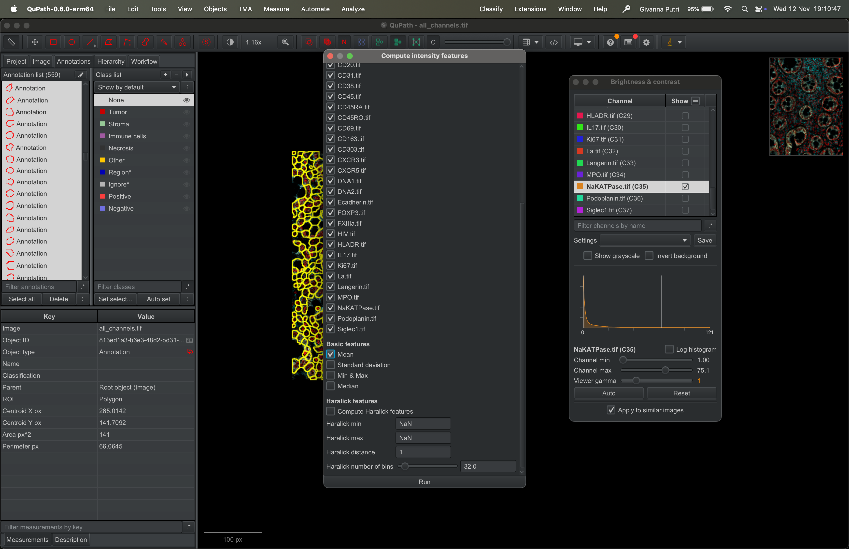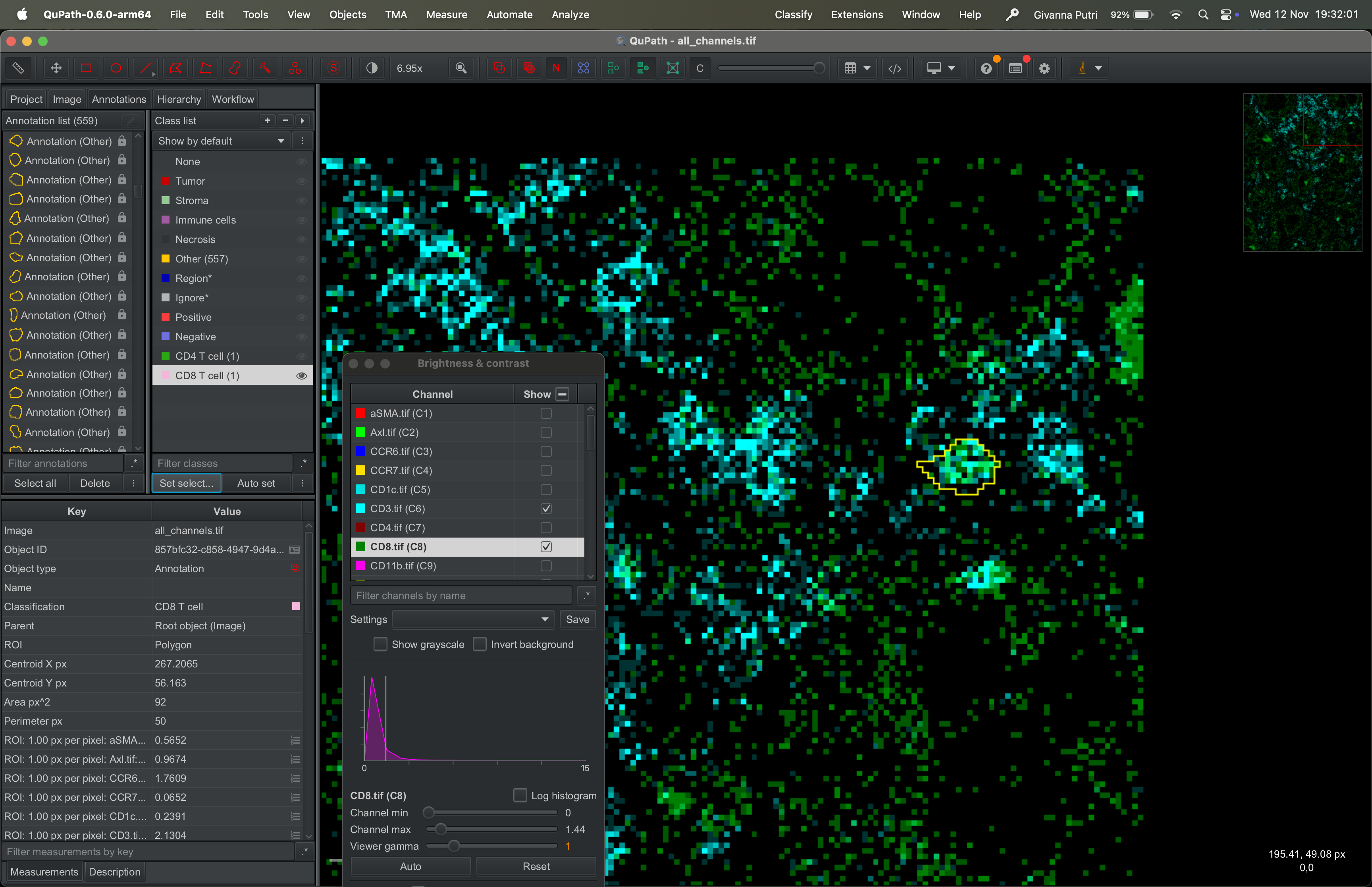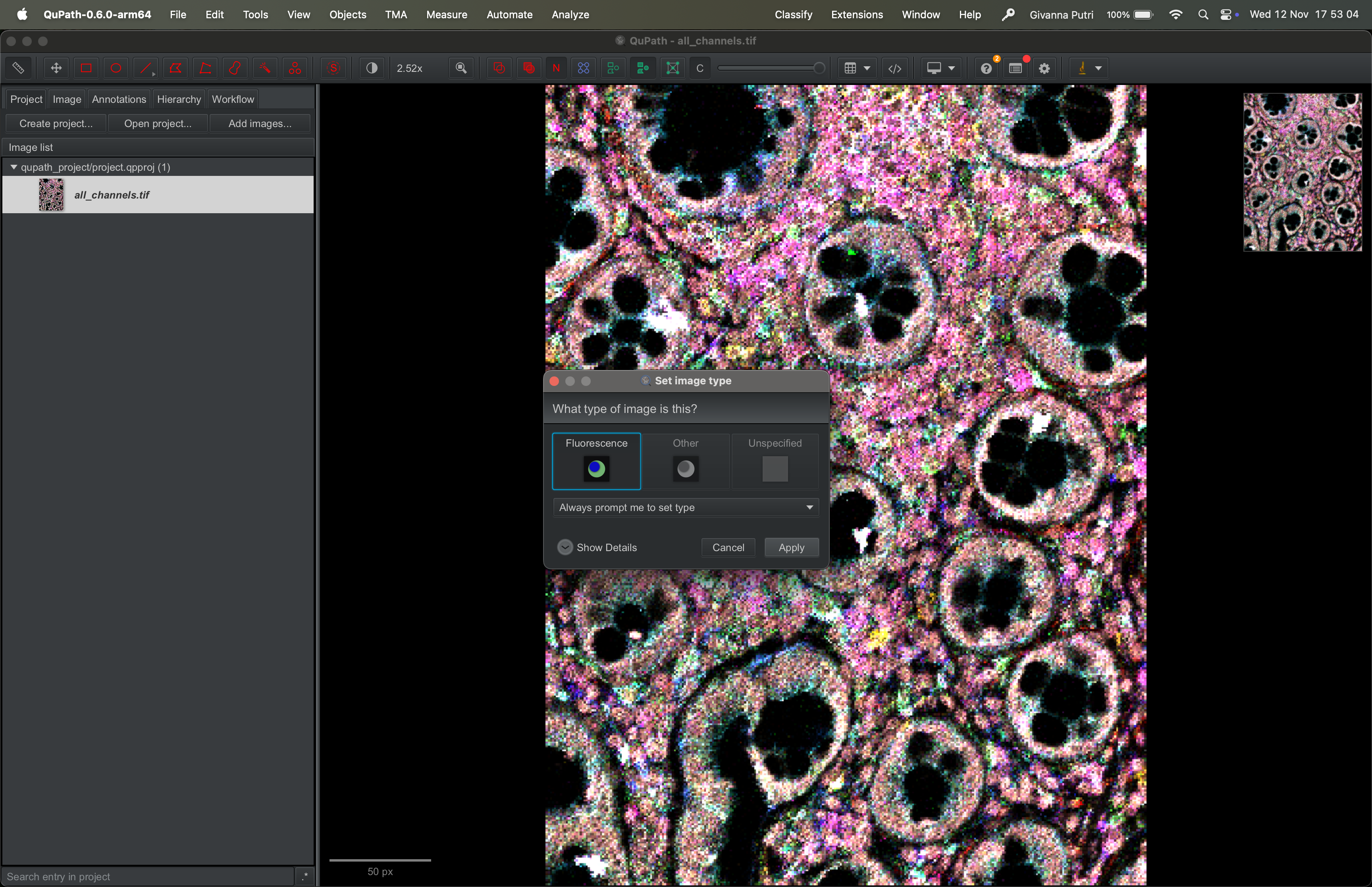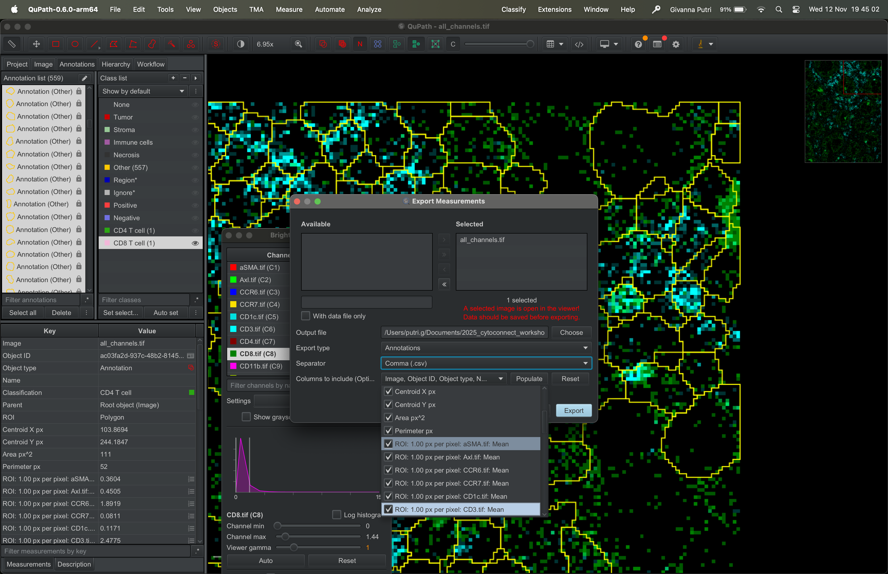 Interacting with the tif file using QuPath