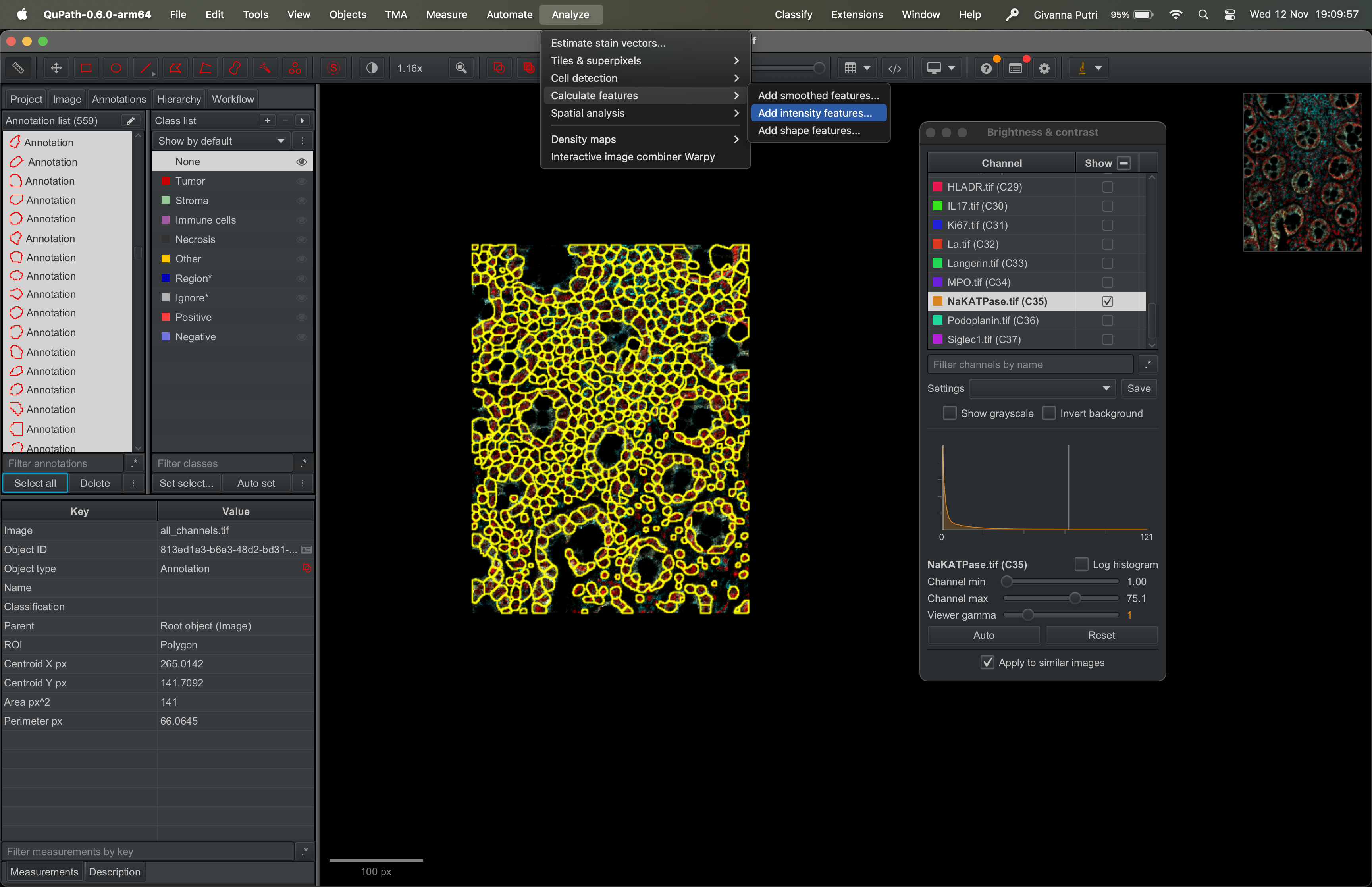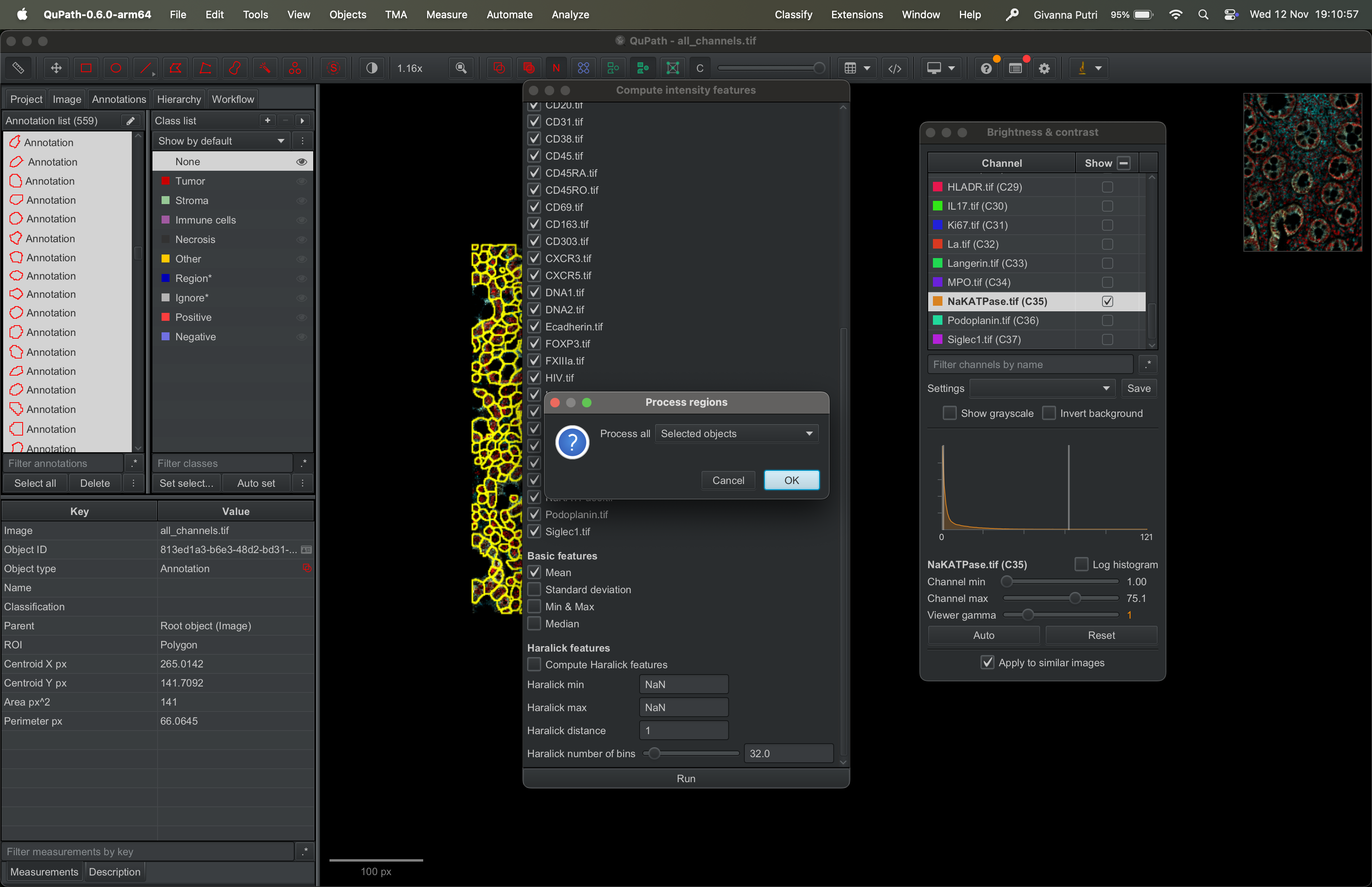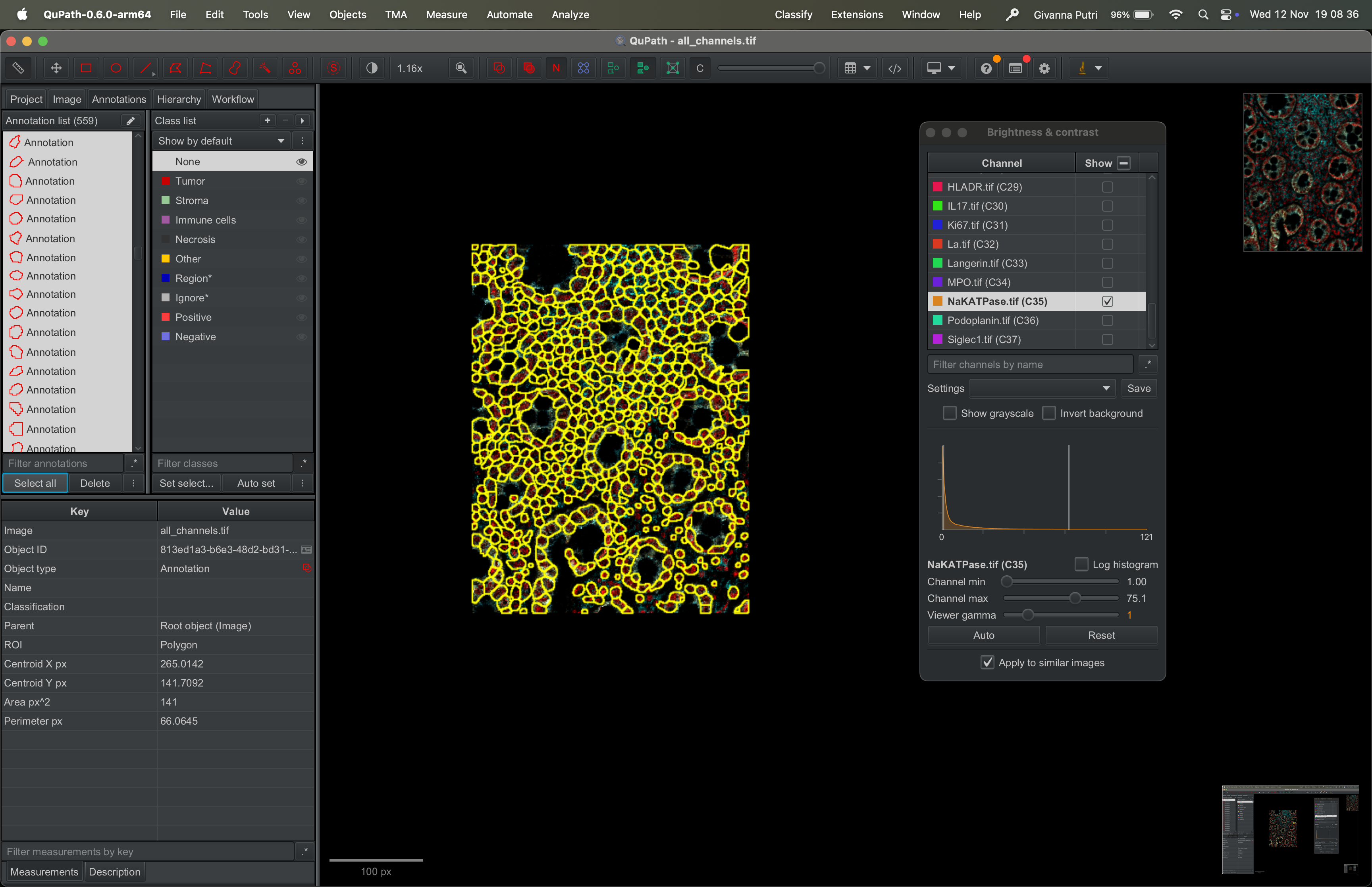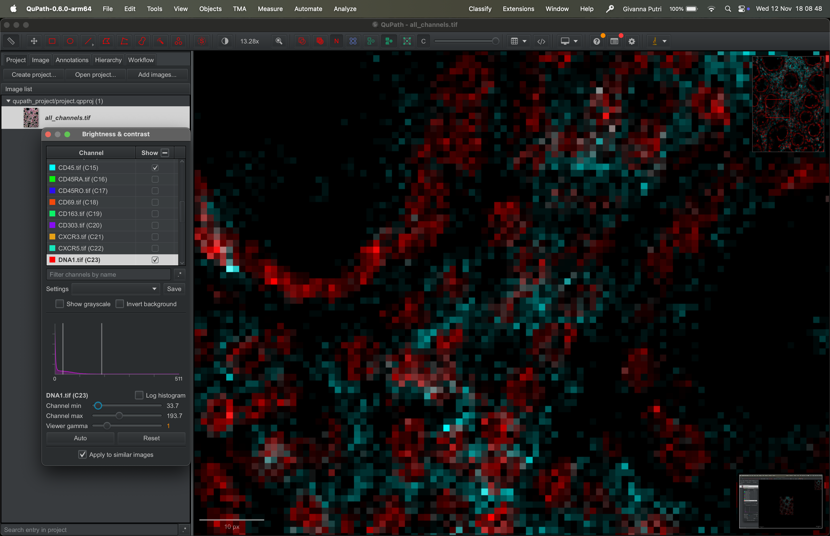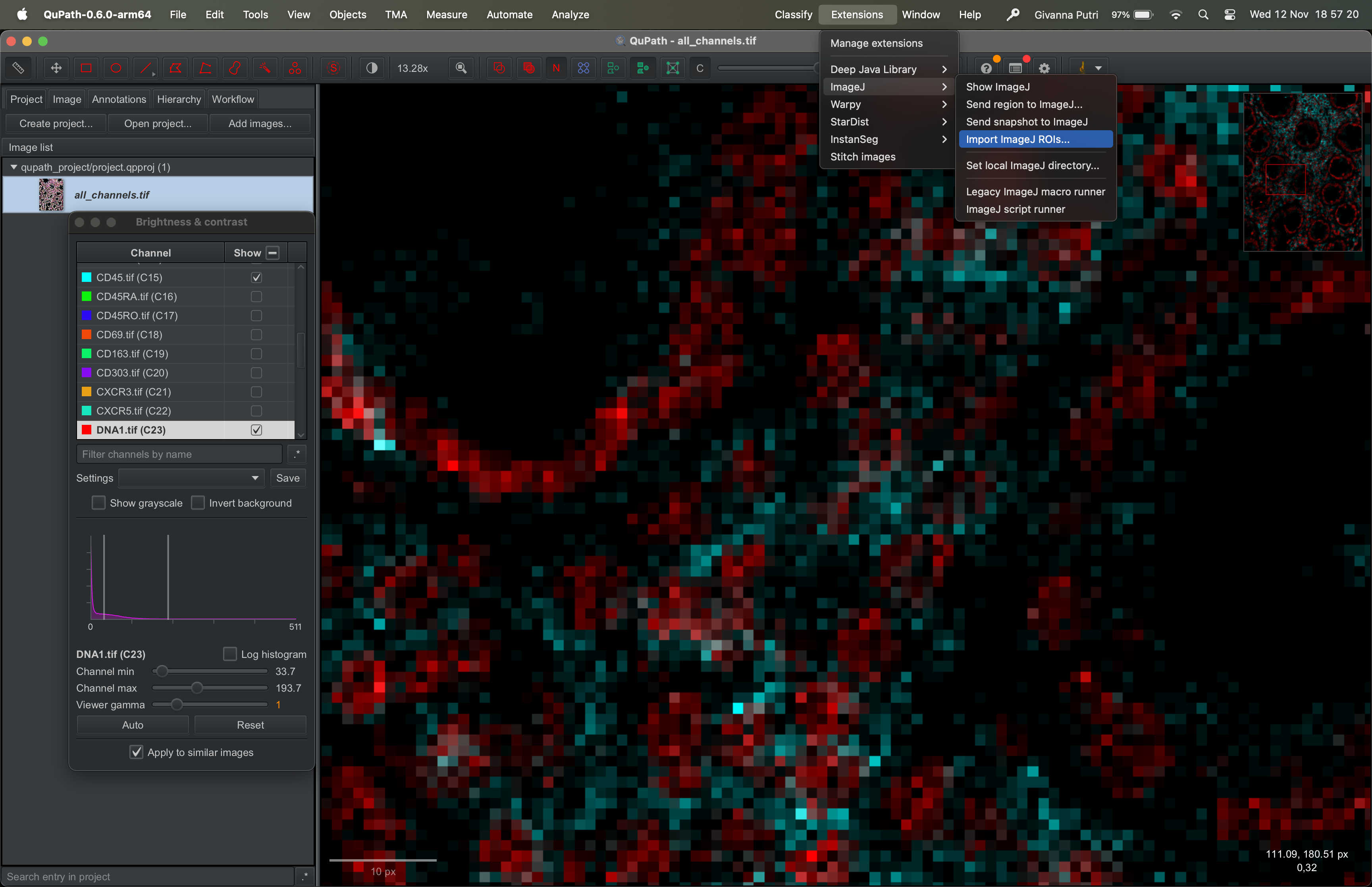 Interacting with the tif file using QuPath