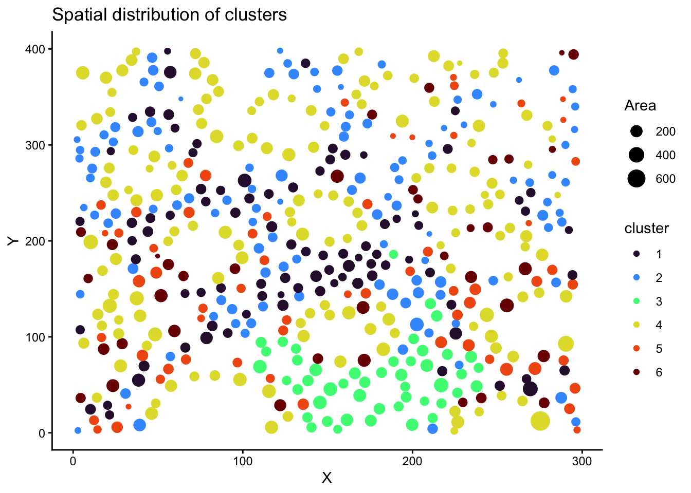 title = "Spatial distribution of clusters"
