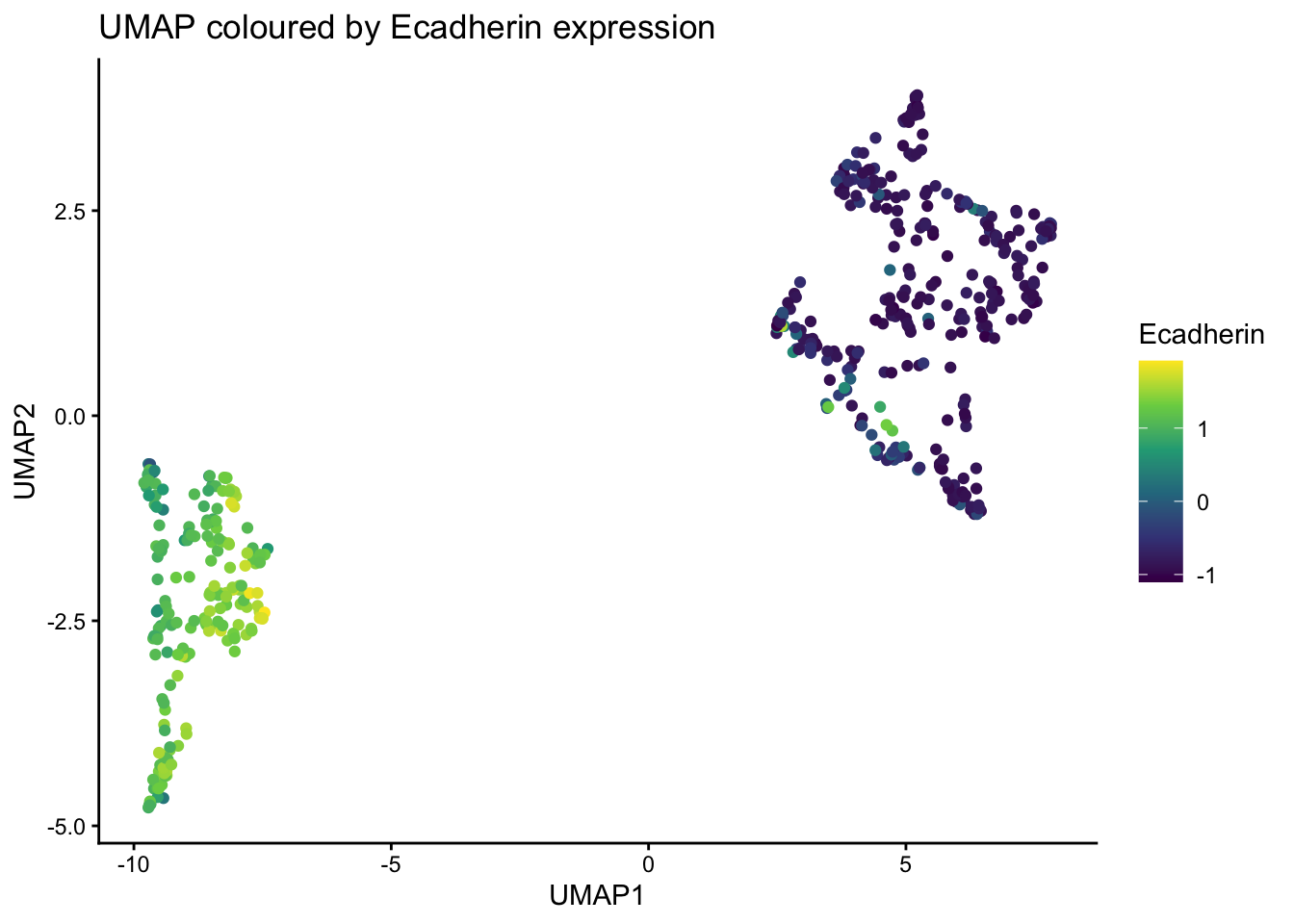 title = "Ecadherin expression distribution across clusters"