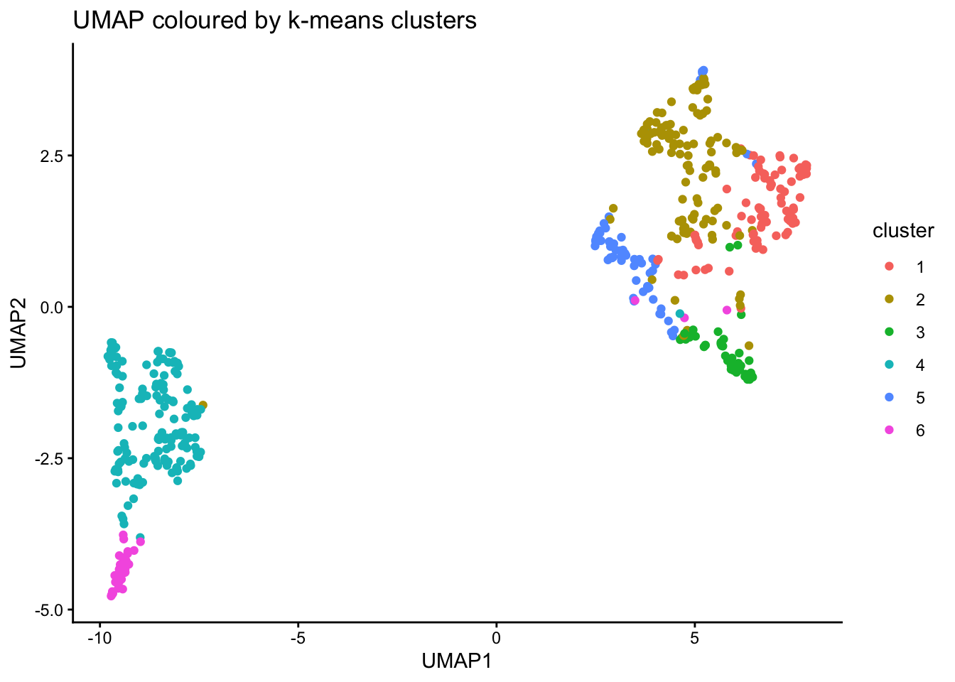 ggplot(umap_res, aes(x=UMAP1, y=UMAP2, color = cluster)) +