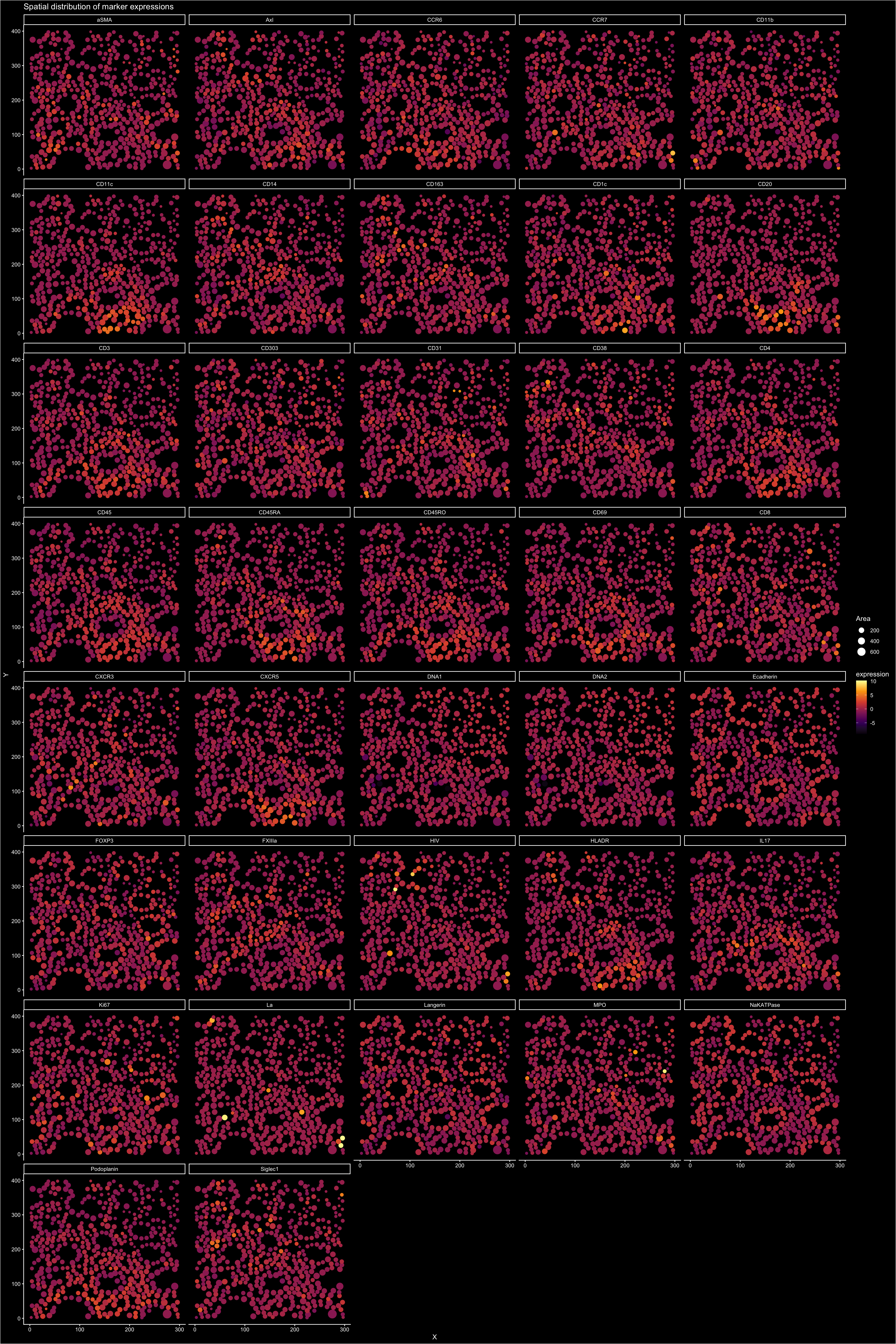 title = "Spatial distribution of marker expressions"
