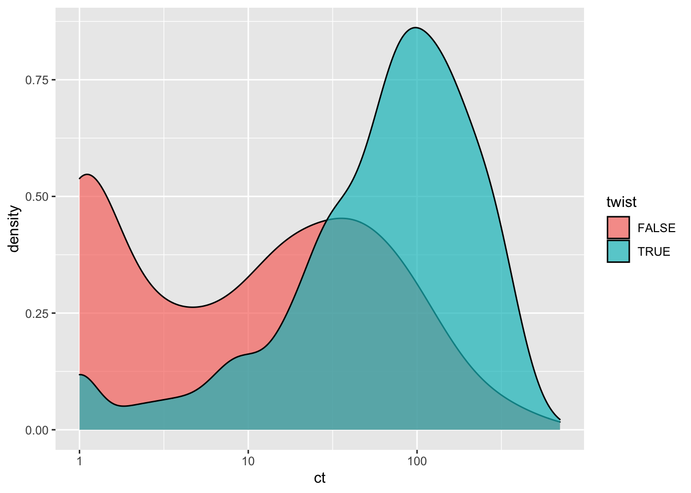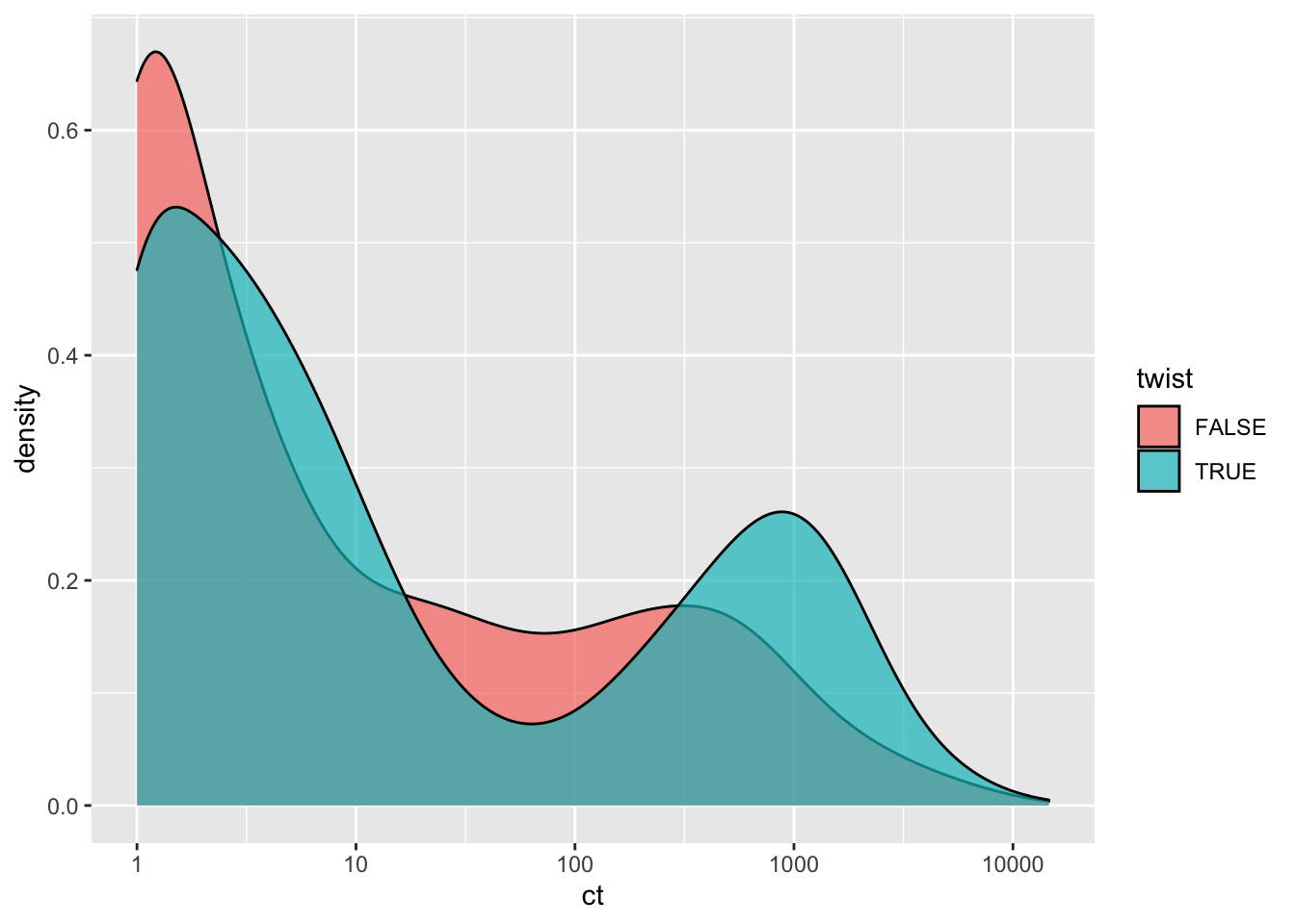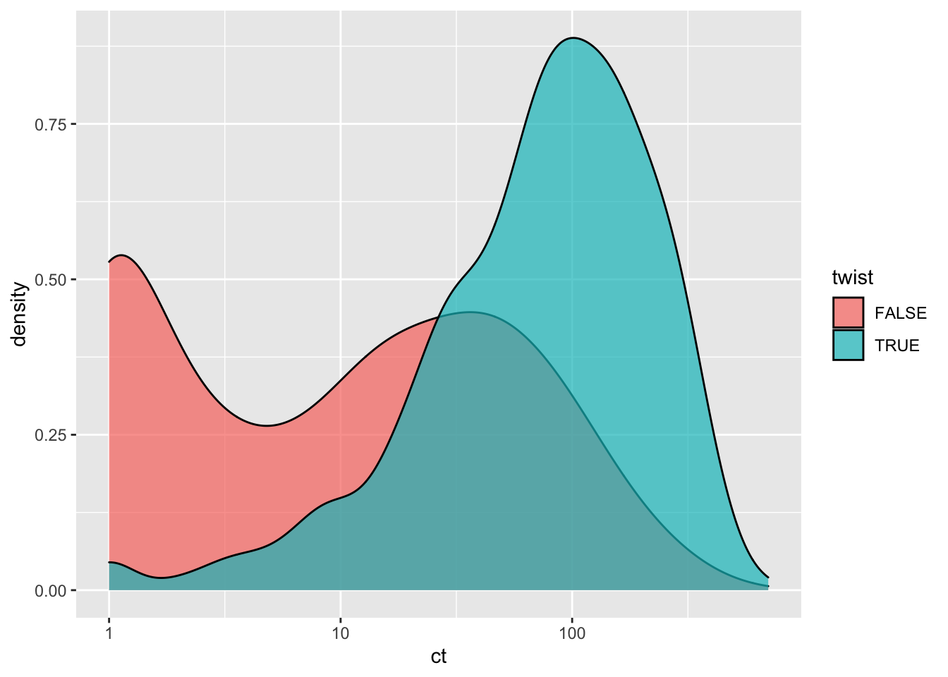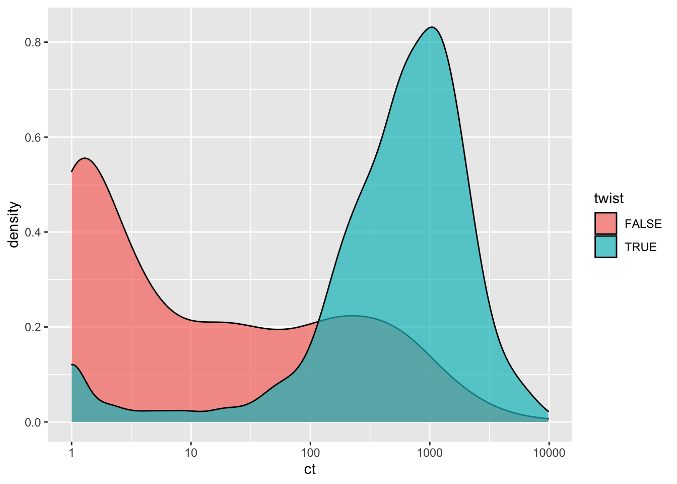 ggplot(btr4d0b%>%filter(protein_start%in%c(465:512)),aes(x=ct,fill=twist))+geom_density(alpha=.7)+scale_x_continuous(trans="log10")