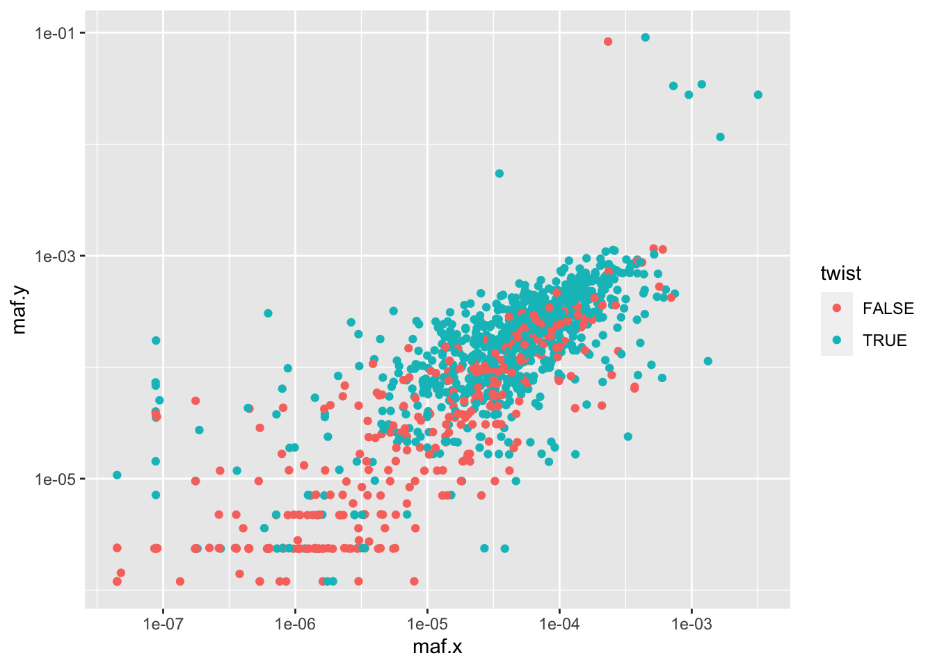 ggplot(btr4d0ab,aes(x=maf.x,y=maf.y,color=twist))+
