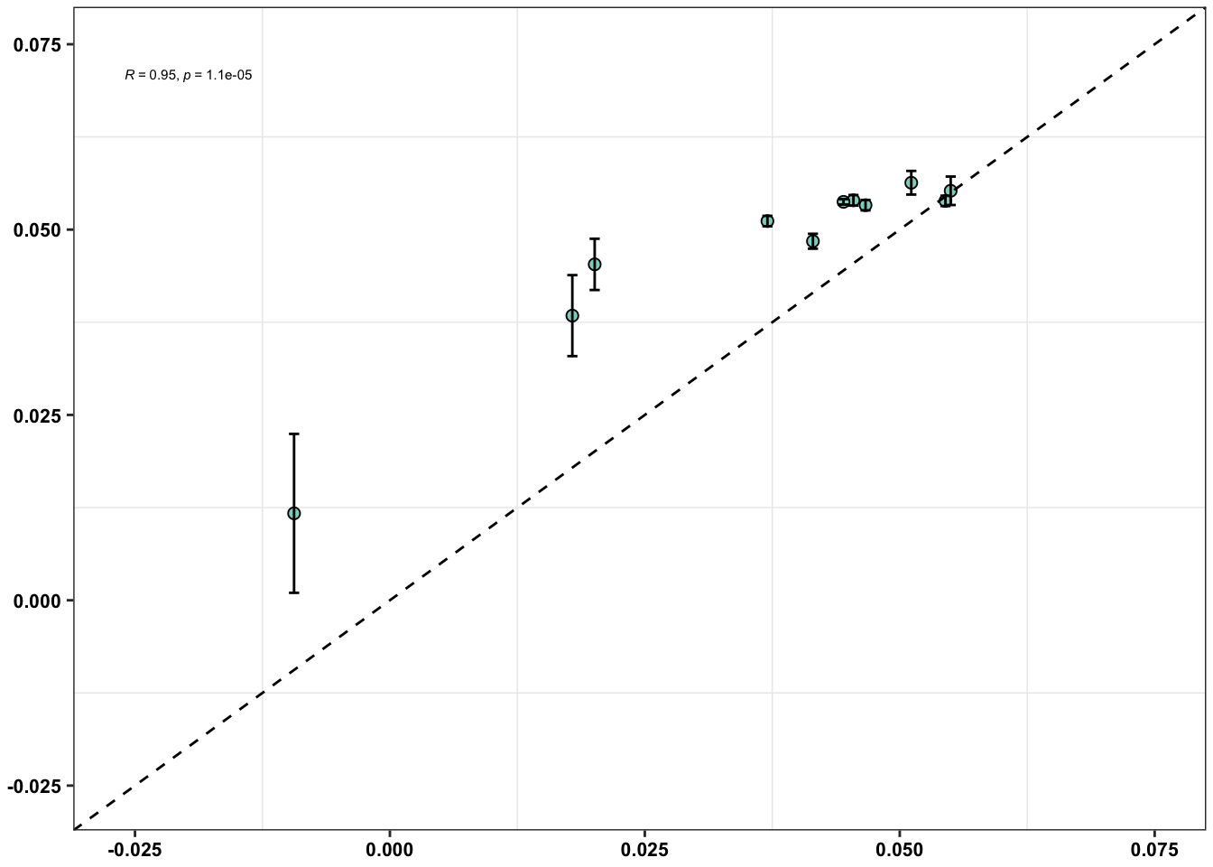 stat_cor(aes(x=.055-standards_tileseq$drug_effect,y=standards_tileseq$mean_fitness),method="pearson",color="#8ED3C7",size=2,vjust=1.5)+