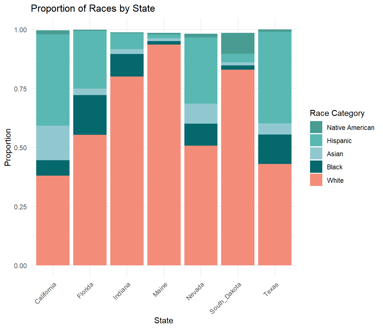 Below are some summary statistics of the racial demographics of each state’s total population.