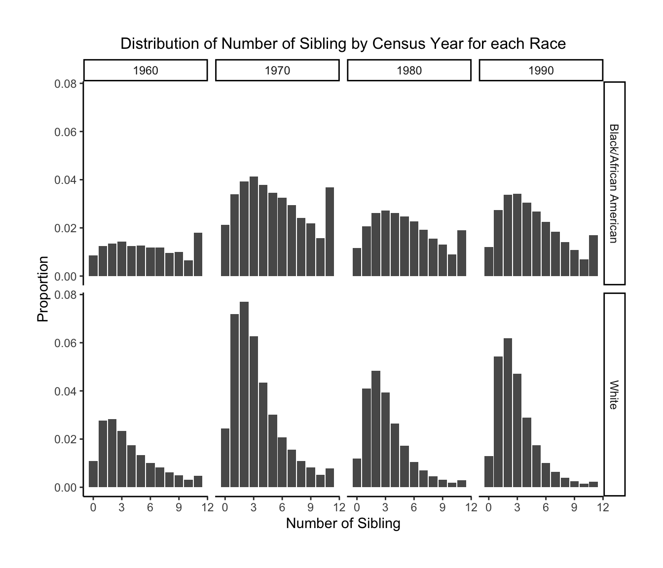 Summary Statistics of Number of Siblings of Black/African American Population | ||||