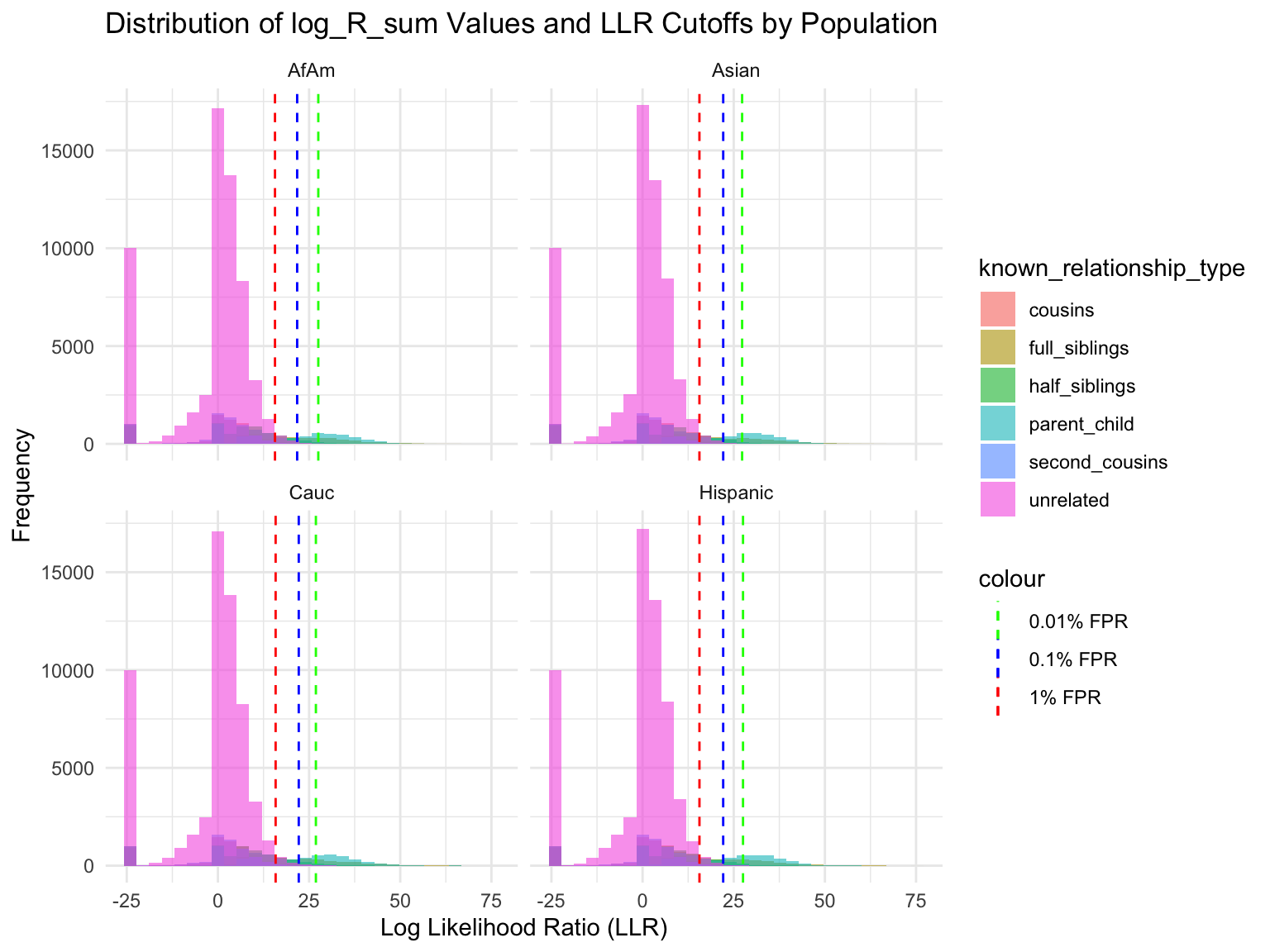 The R script “code/known-vs-tested_simulation_script.R” simulates STR pairs and calculates likelihood ratios, shared alleles, and relatedness scores across different populations. The script is divided into the following sections: