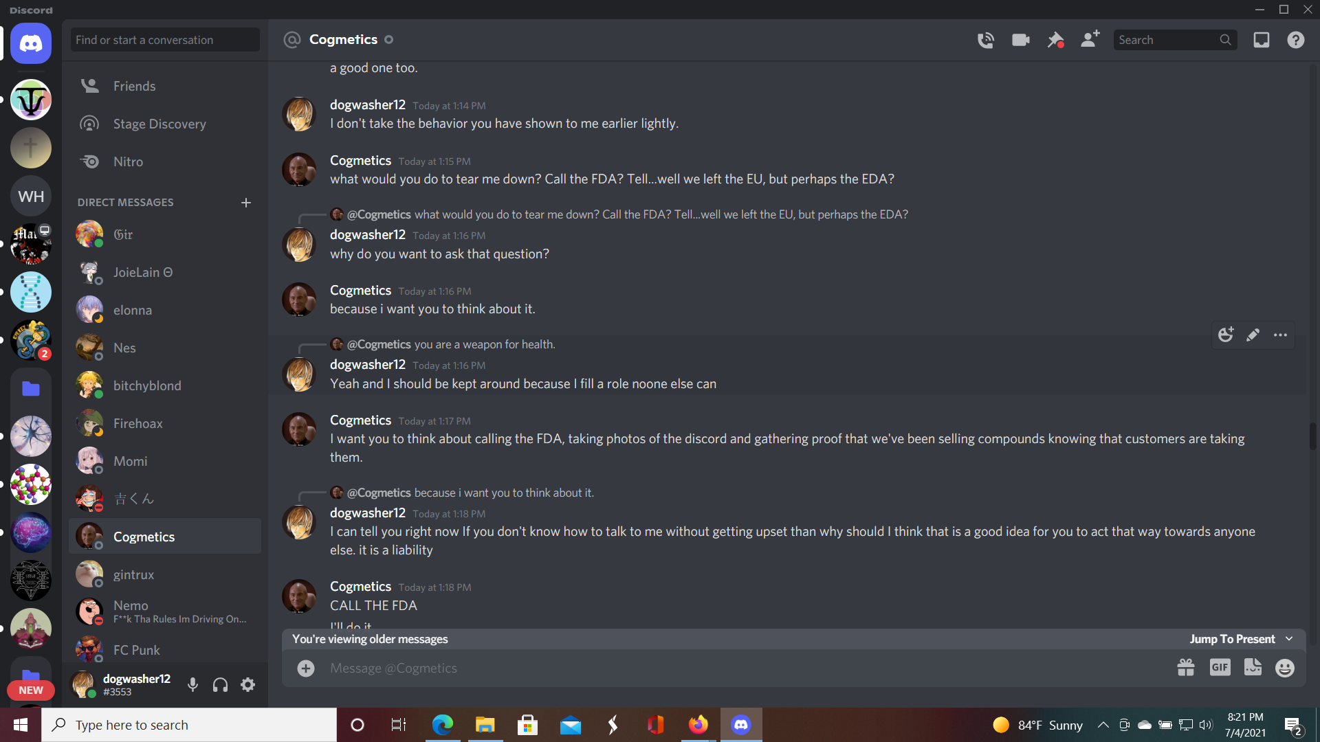 Even when you hate some motherfucker in the nootropics space you don't do that unless there's serious risk that something could come to harm to someone, or its the sourcing of illegal drugs,