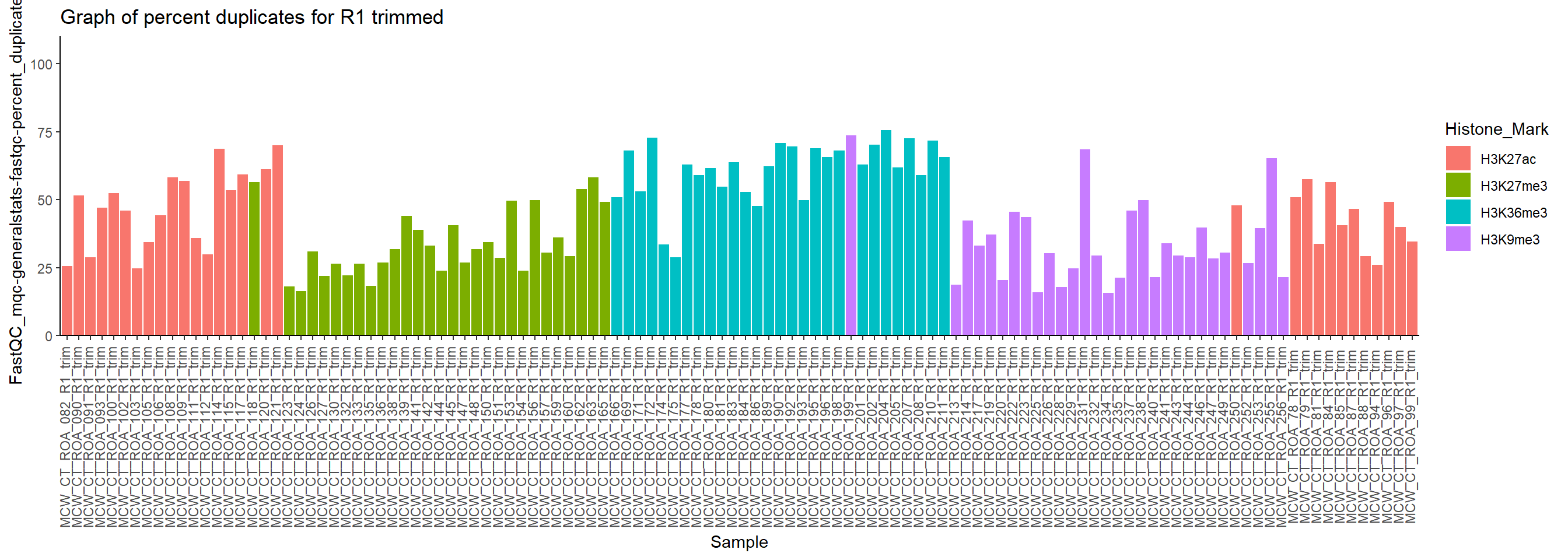 ggtitle("Graph of percent duplicates for R1 trimmed")+