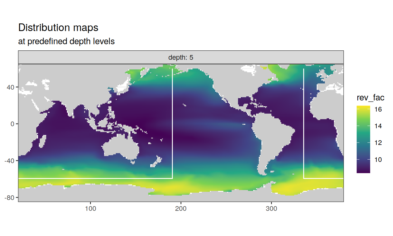 The averaging function is also applied to the surface data, although only one value per grid cell was mapped, to ensure consistency with the deep water values.