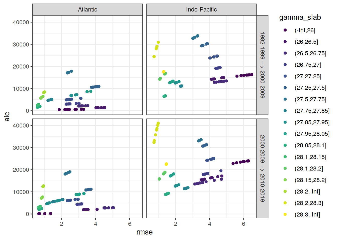 ggplot(aes(rmse, aic, col = gamma_slab)) +