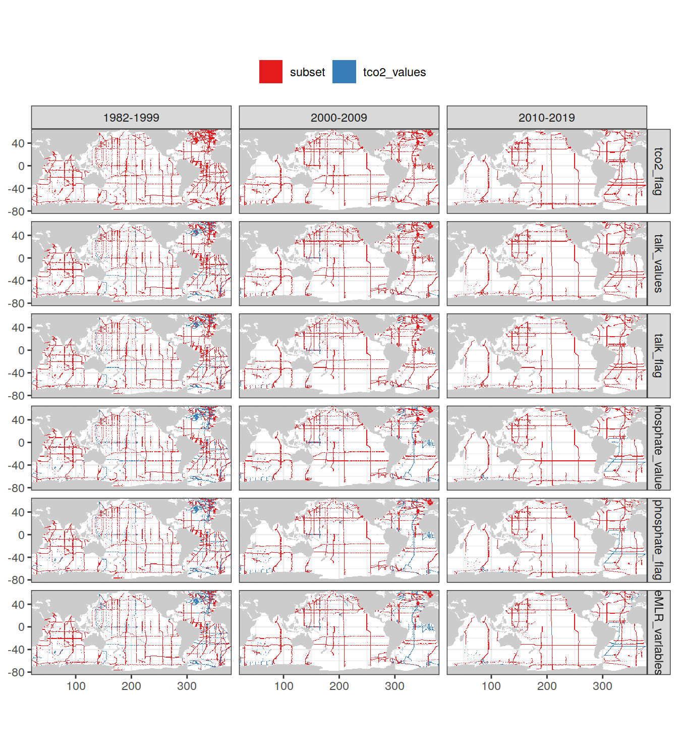 # geom_raster(data = GLODAP_tco2_grid, aes(lon, lat), fill = "grey80") +