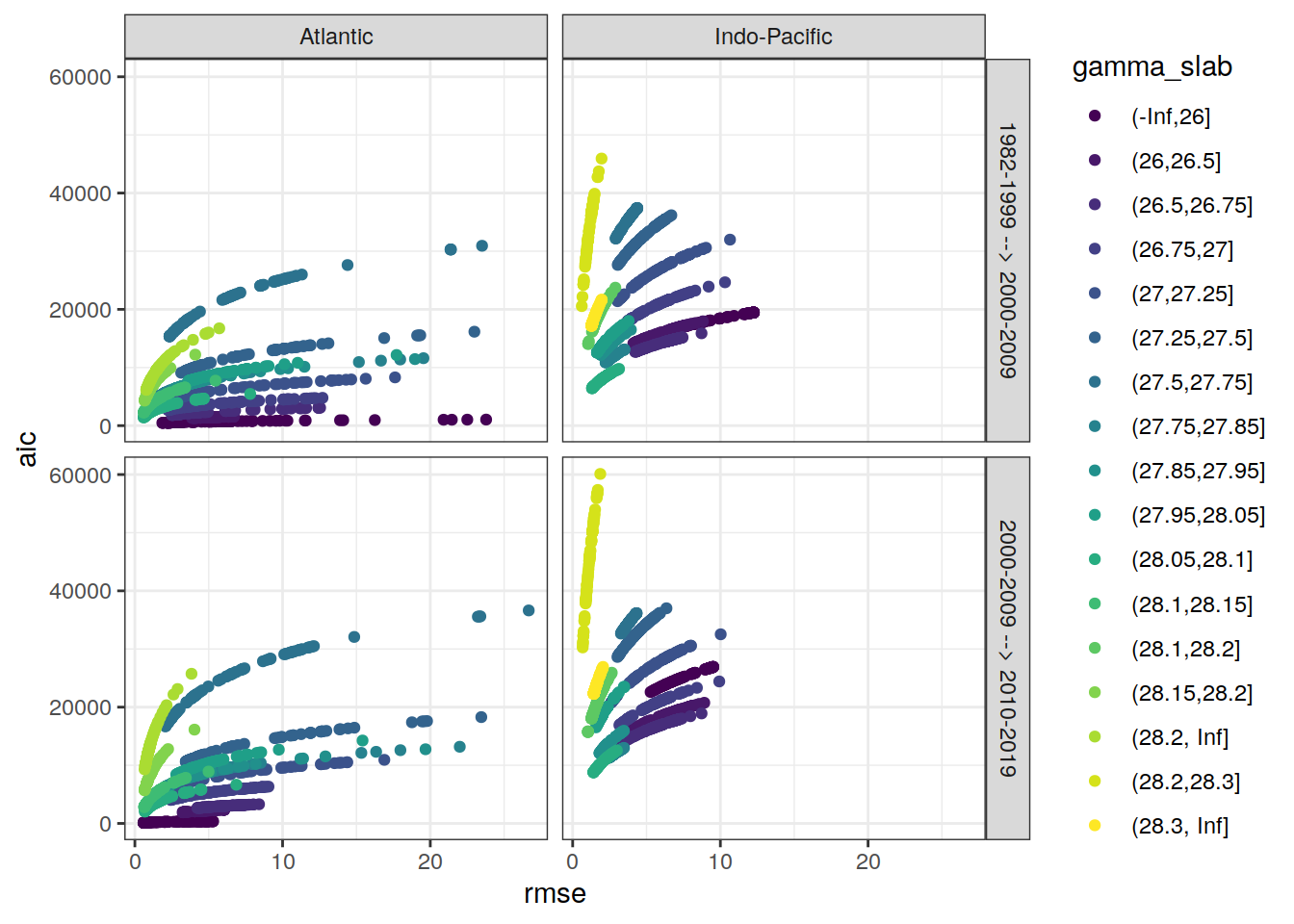 ggplot(aes(rmse, aic, col = gamma_slab)) +