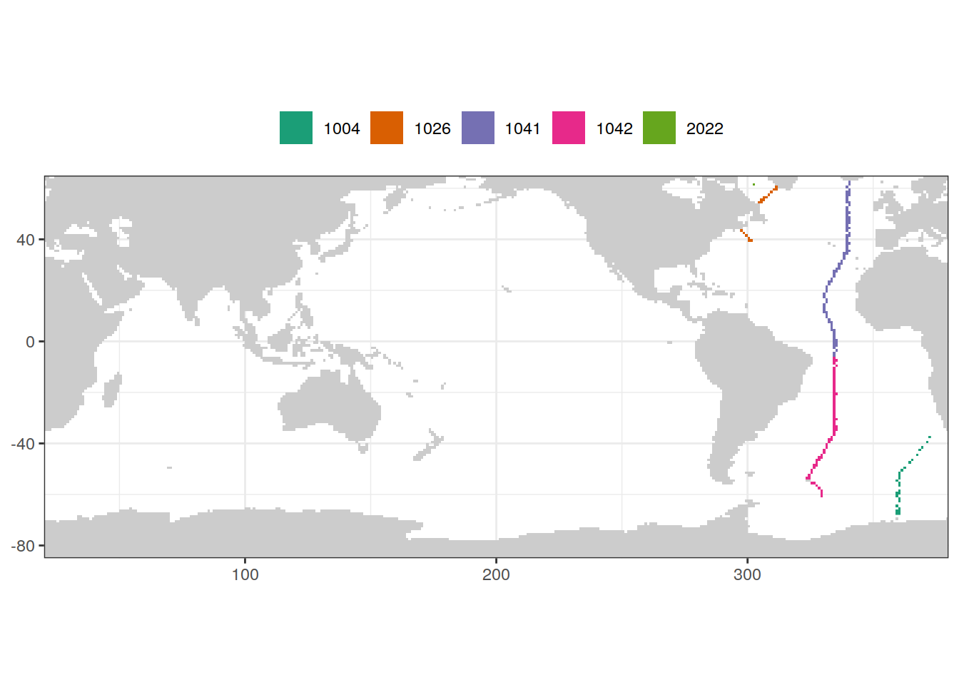 # geom_raster(data = GLODAP_tco2_grid, aes(lon, lat), fill = "grey80") +
