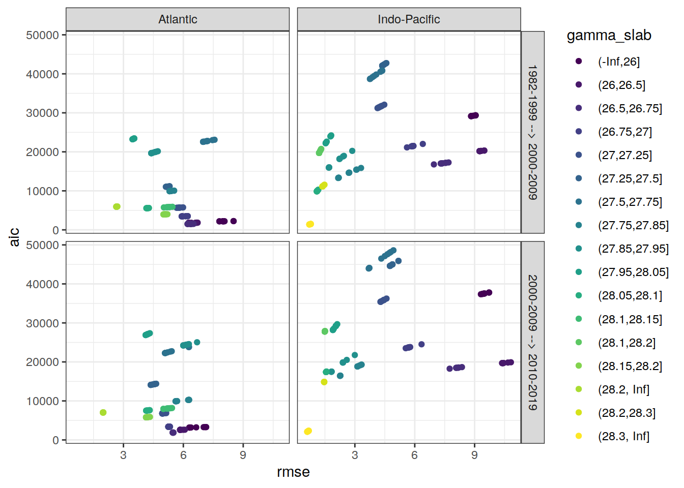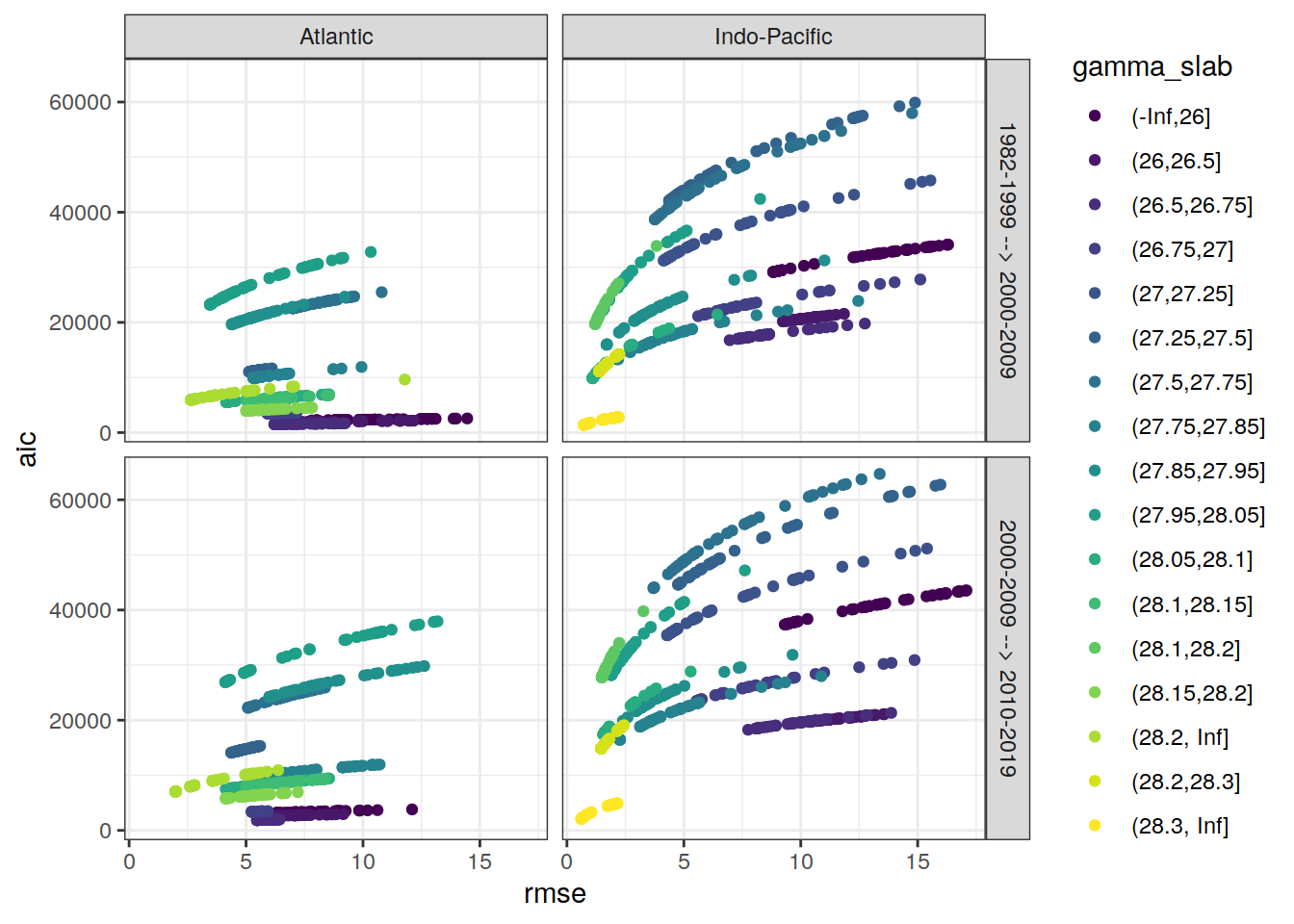 ggplot(aes(rmse, aic, col = gamma_slab)) +