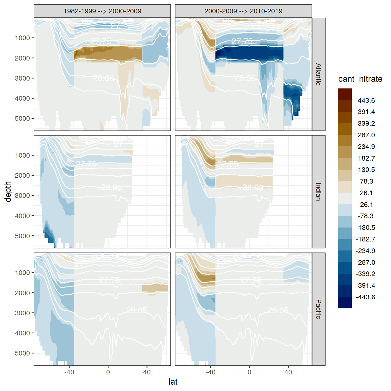 geom_contour(aes(lat, depth, z = gamma_mean),