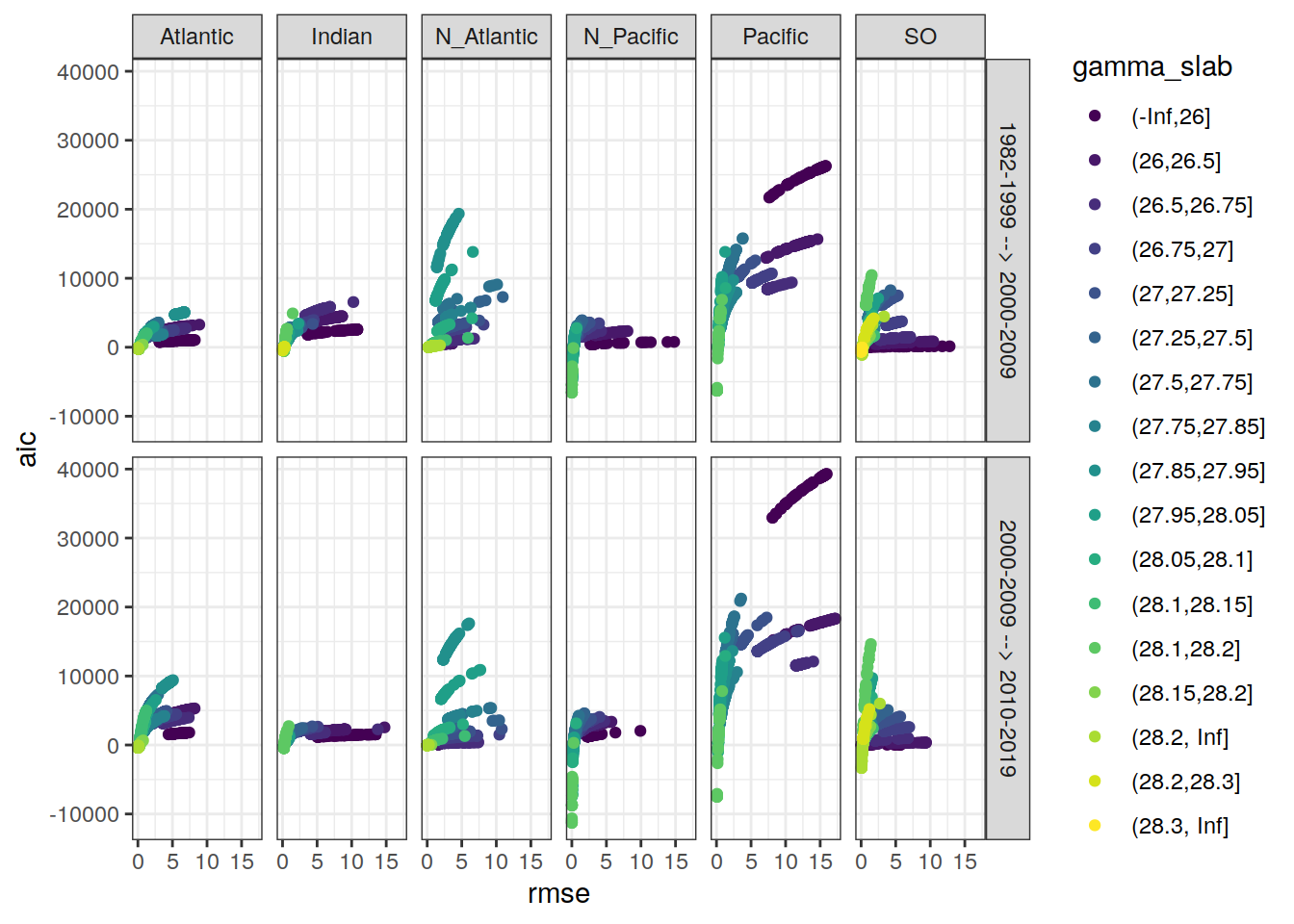 ggplot(aes(rmse, aic, col = gamma_slab)) +