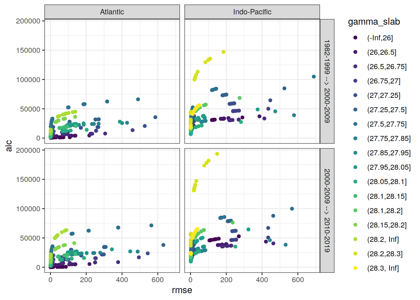 ggplot(aes(rmse, aic, col = gamma_slab)) +