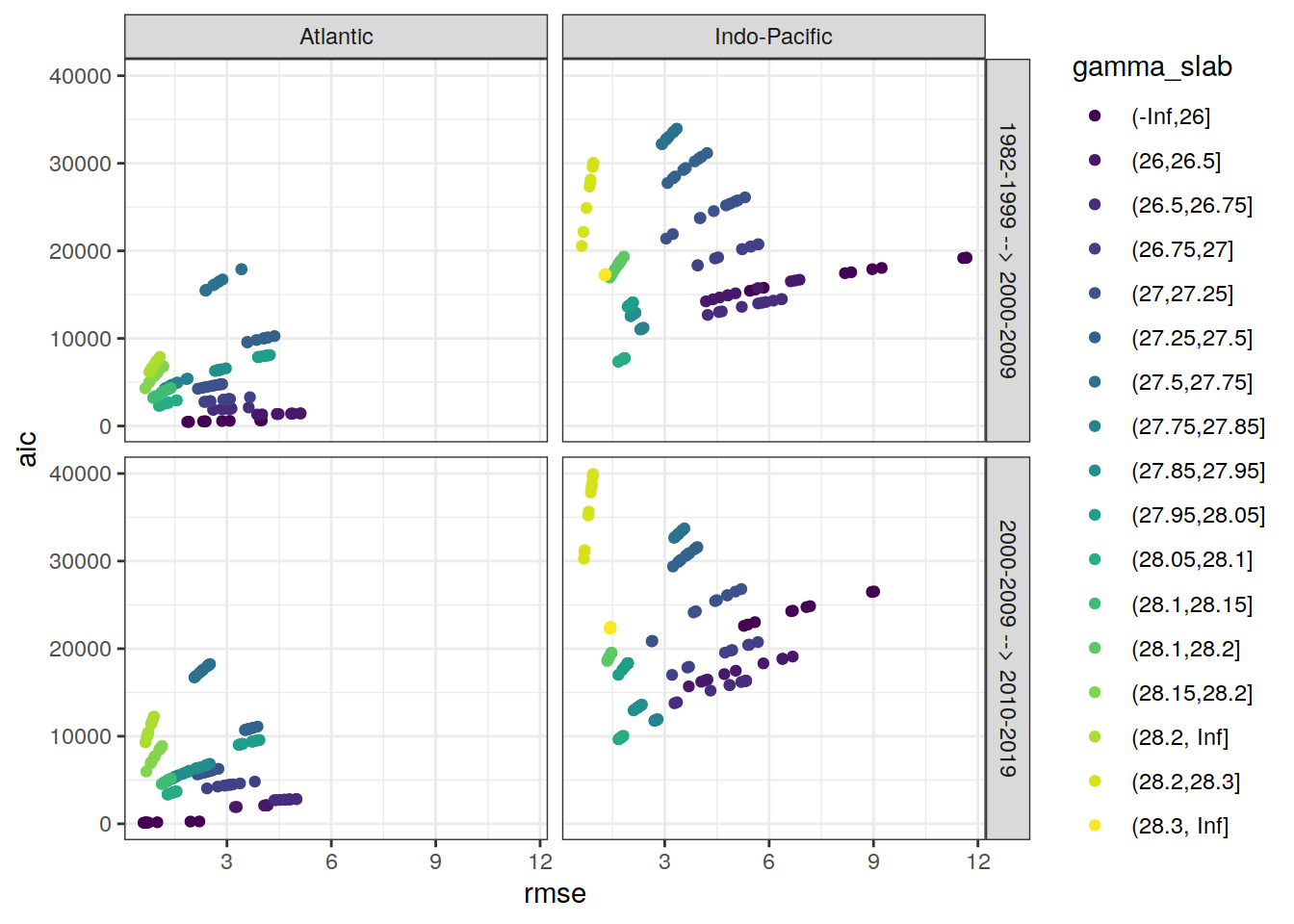 ggplot(aes(rmse, aic, col = gamma_slab)) +